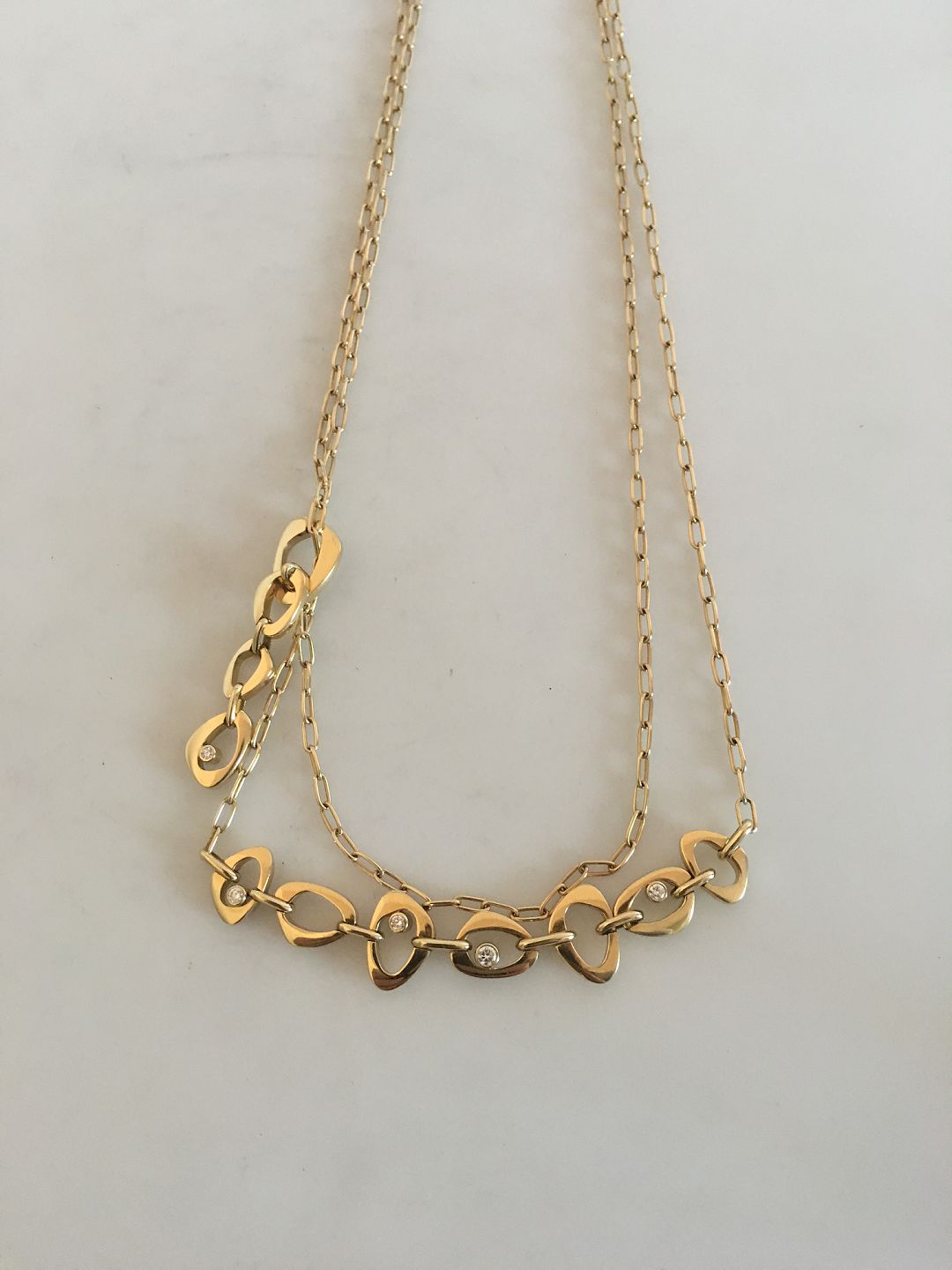 Georg Jensen Lina Falkesgaard 18K Guld Collier prydet med 10 diamanter. Måler 112 cm. Kæde med justerbar lukning. Vejer 28,2 g. Stemplet GJ750