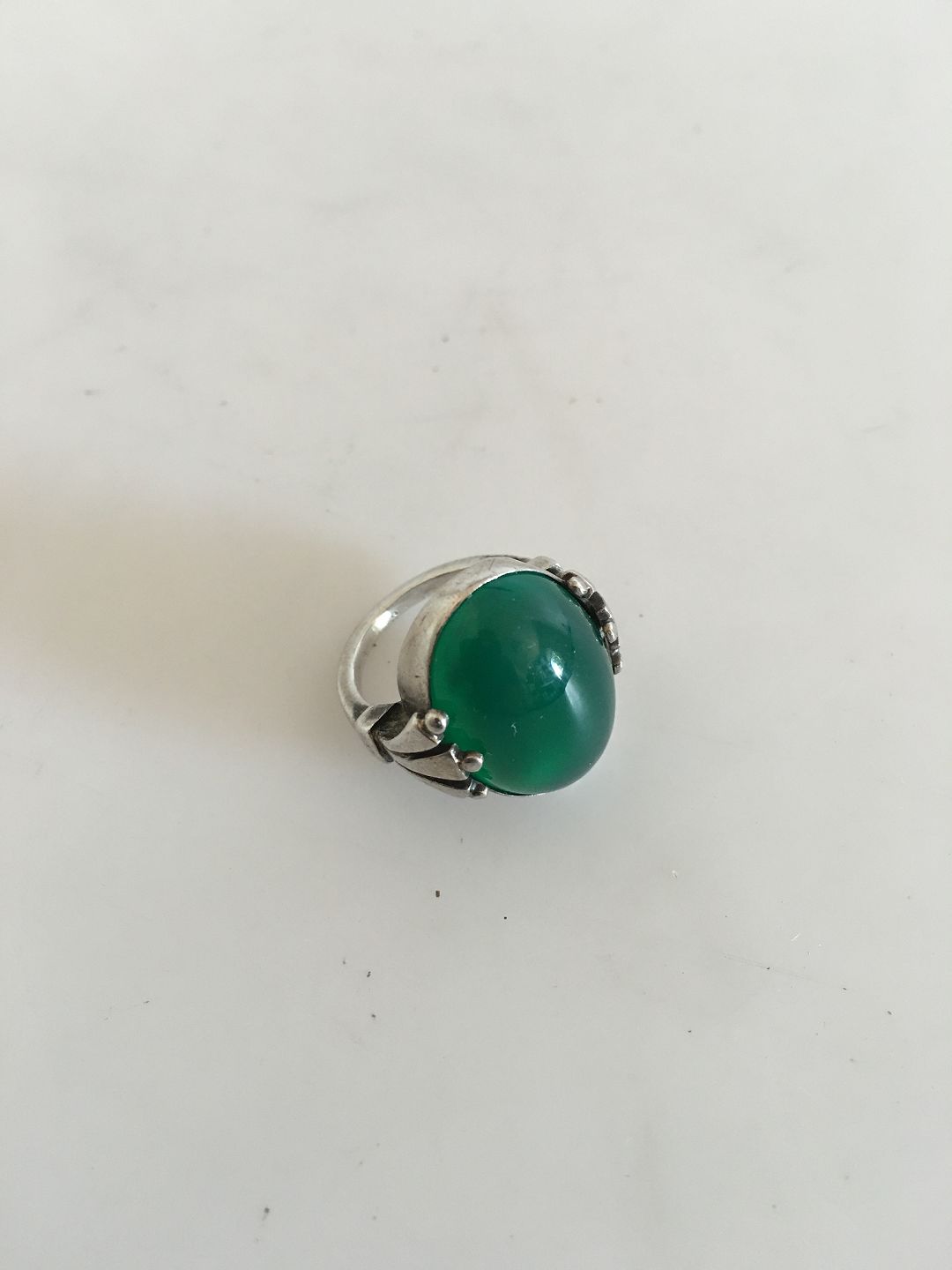 Georg Jensen Sterling Sølv Ring No 51 med Grøn Agat. Ringstørrelse 44. Vejer 6 g. Fra efter 1945.