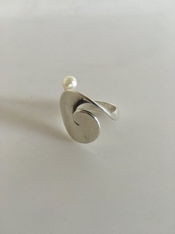 Georg Jensen Sterling Sølv Torun Ring med Perle No 370. Ringstørrelse 54. Vejer 7,2 gram