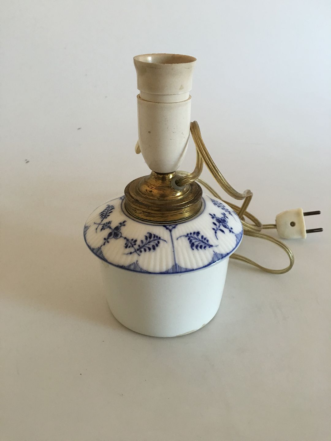 Royal Copenhagen Blue Fluted Plain Lamp Top. The tops widest circuit is 35.5 cm (13 31/32"). The top has a chip in it as shown on picture, but you can not see the chip when the lamp is placed in the right lamp holder.