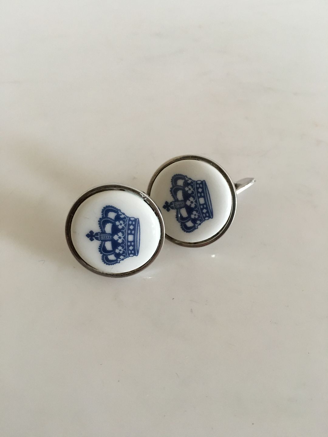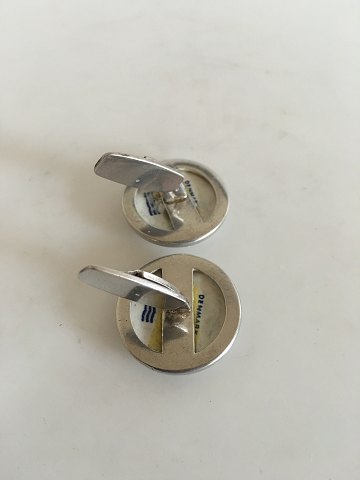 Georg Jensen Sterling Silver Cuff Links with Porcelain Button by Royal Copenhagen. 2.5 cm dia (0 63/64")