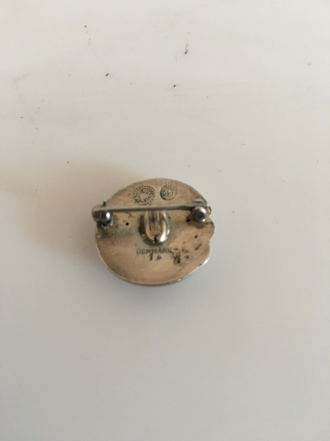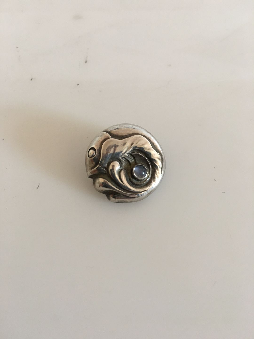 Georg Jensen Silver (830) Brooch. Fish with Moonstone No 1A. The piece is orginally a cufflink redesigned as a brooch. From around 1915-1927. 1.8 cm dia (0 45/64")