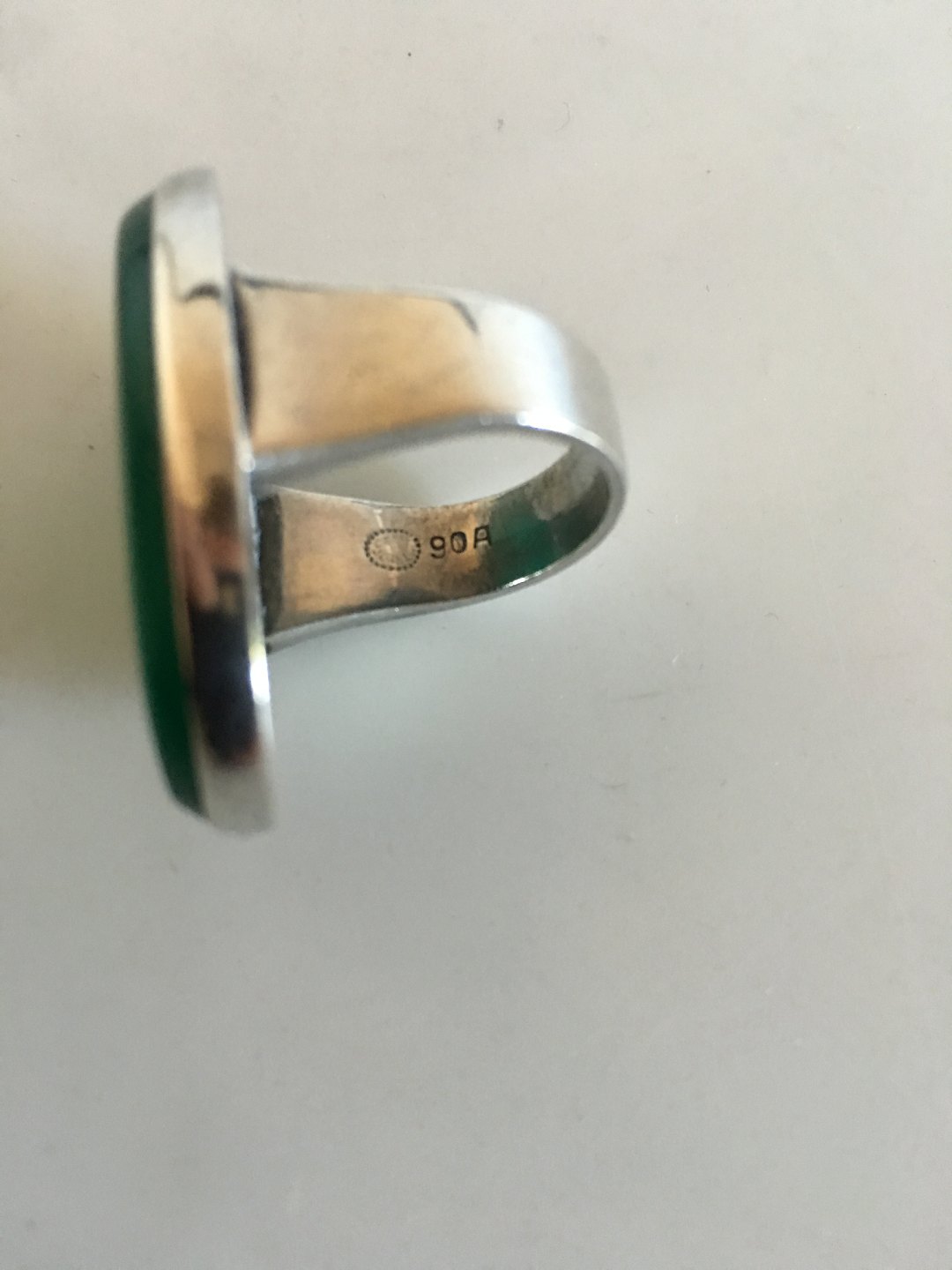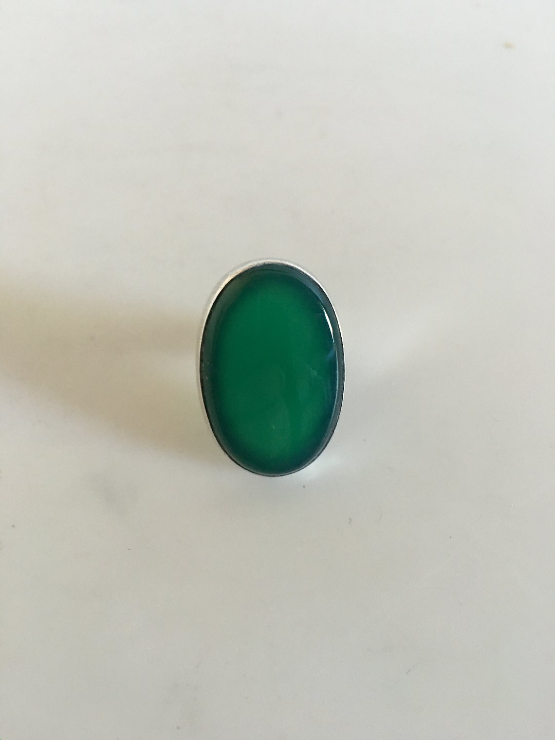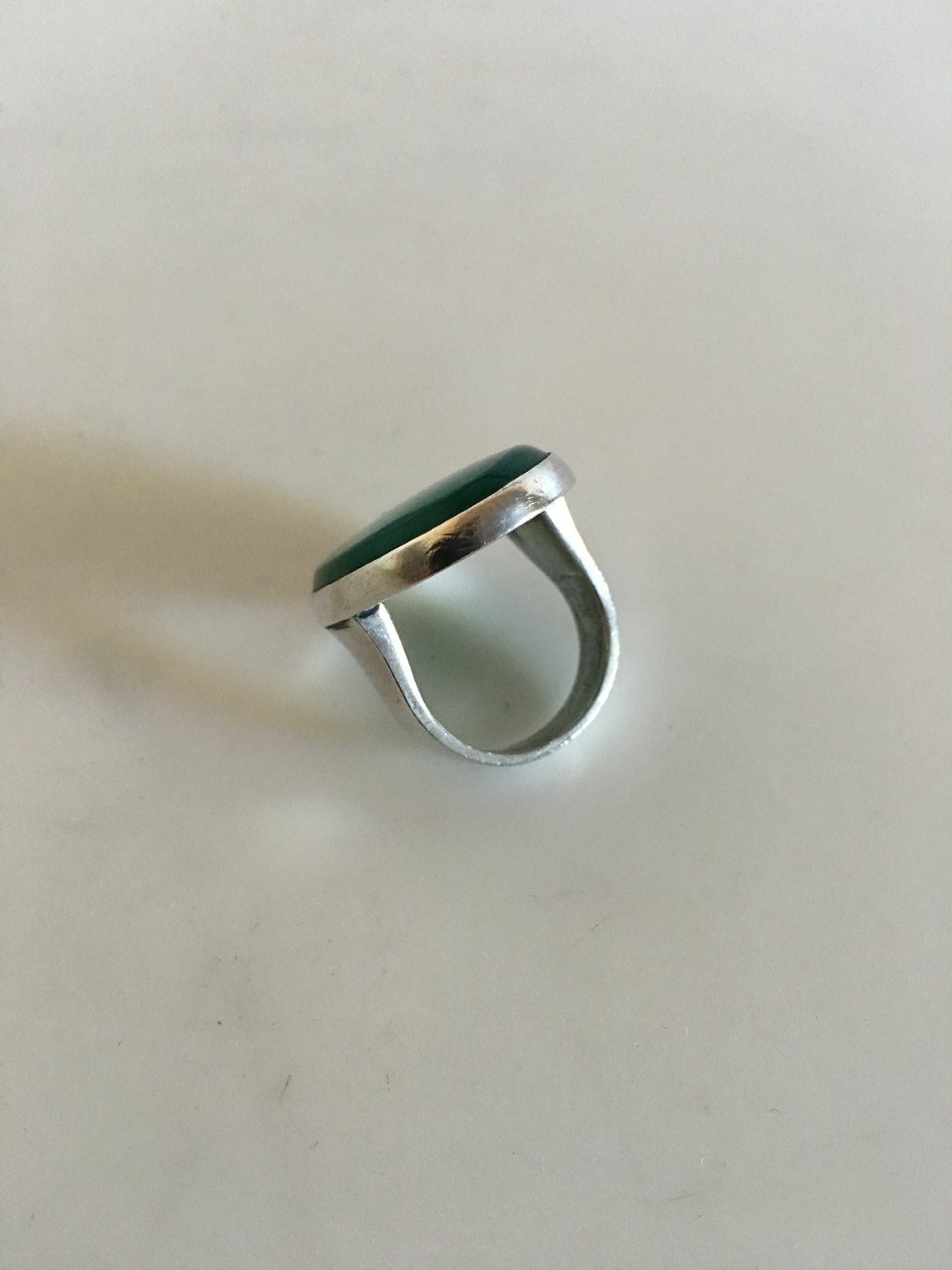 Georg Jensen Sterling Silver Ring No 90A with Green Agate. From after 1945. Stone measures 3 cm (1 3/16"). Ring Size 55 (US 7 �).