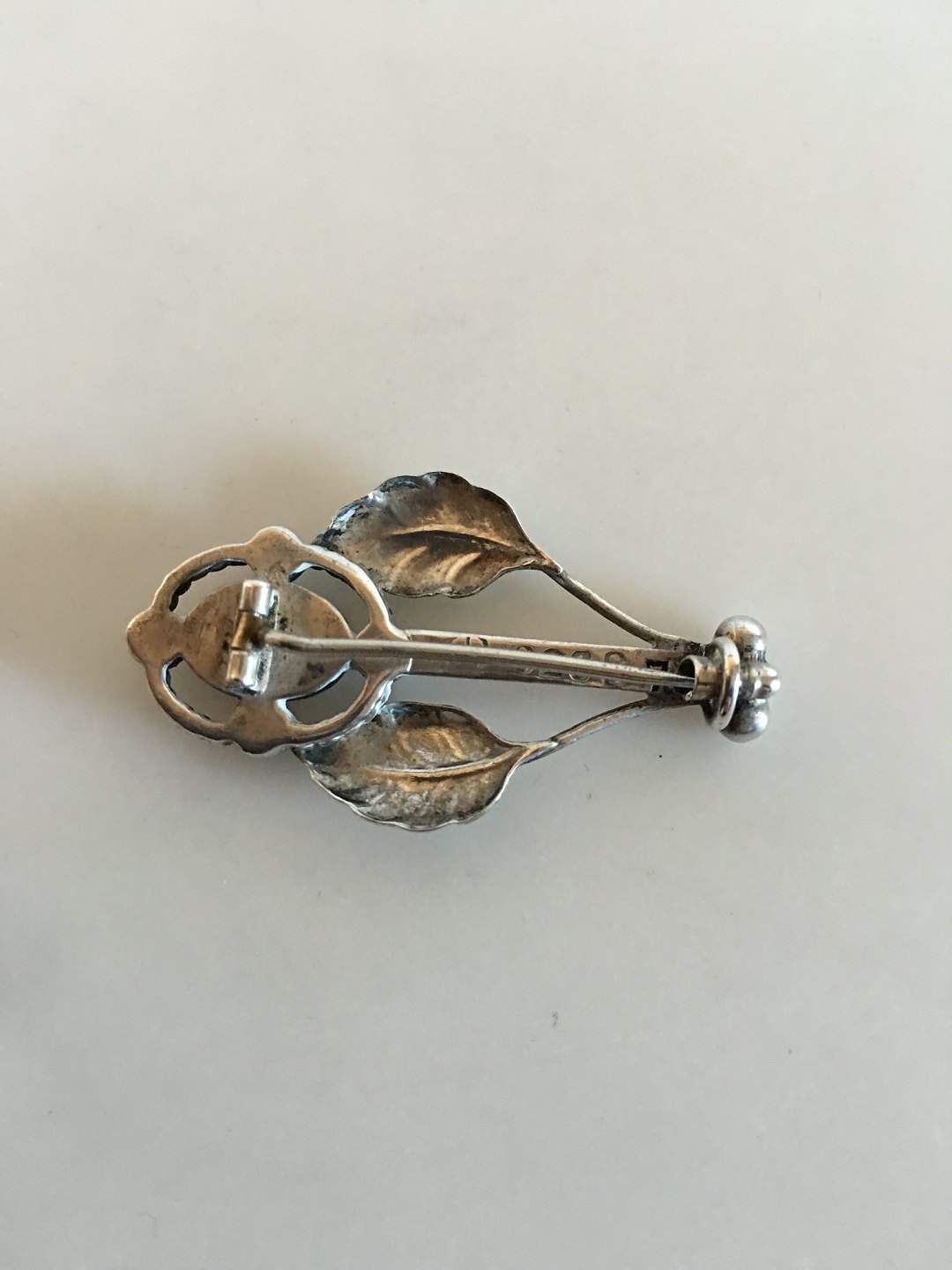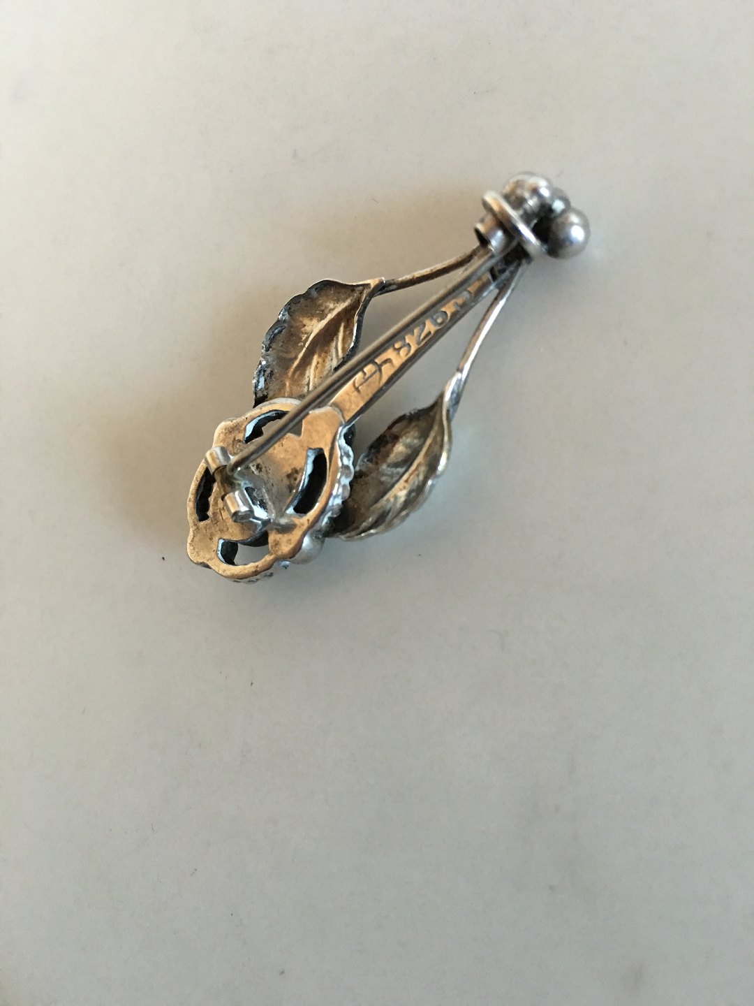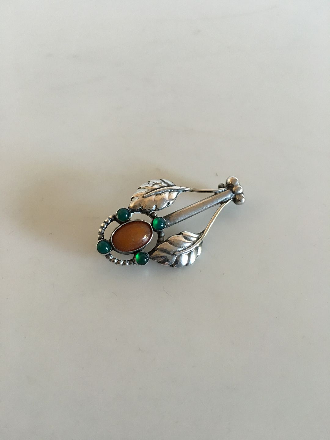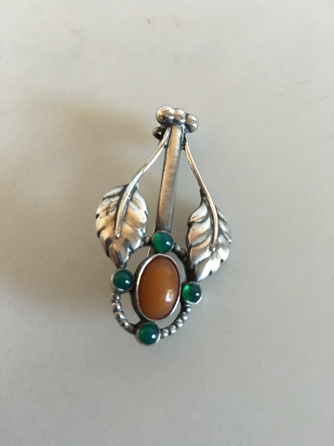 Georg Jensen Sølv Broche med Rav og Agater No 7. Fra 1904-1908. Måler 4 cm. Vejer 4,9 gram. I fin stand.