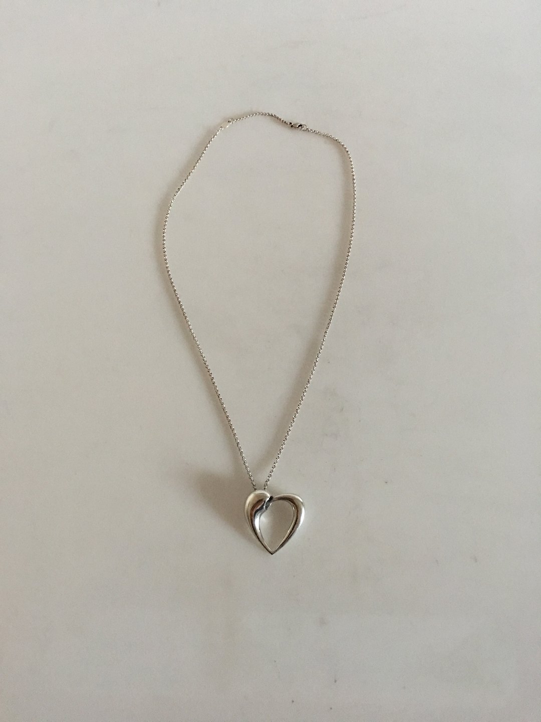 Georg Jensen Sterling Sølv Halskæde med Hjertevedhæng. Kæden er 45 cm L. Hjertet Måler 2.5 cm. Vejer 12 gram