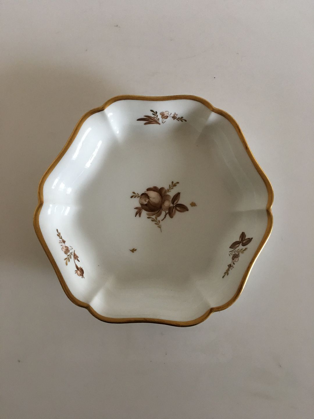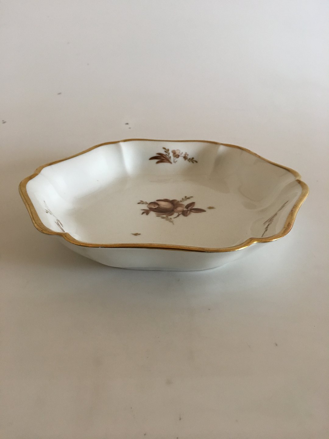 Royal Copenhagen Brun Rose Sekskantet Kageskål No 9458. 22 cm. I fin stand