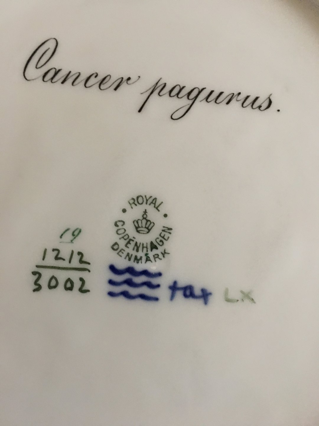 Royal Copenhagen Blå Fisketallerken med Guld No 1212/3002. Med Cancer Pagurus. 23 cm. I perfekt stand