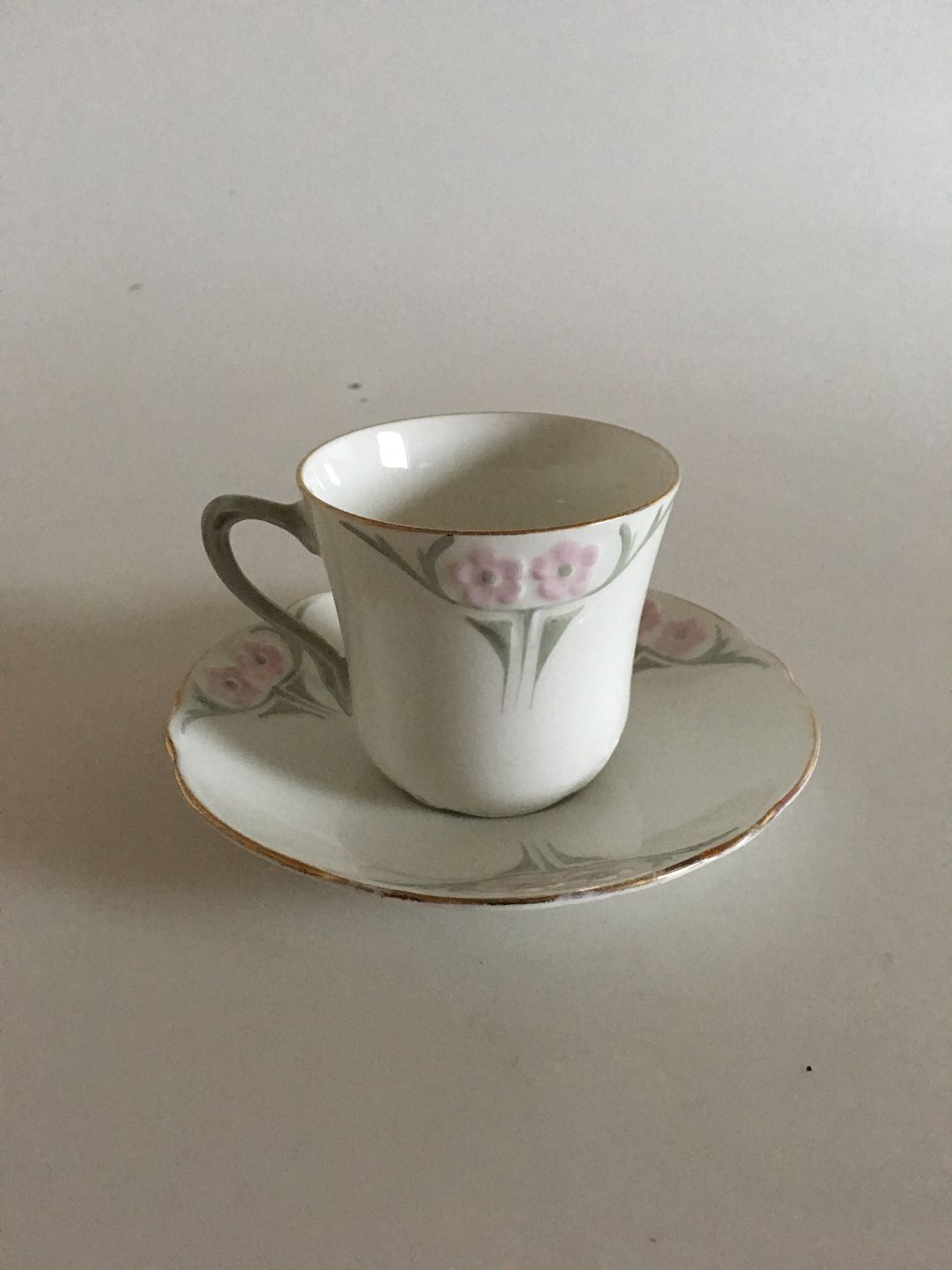 Rørstrand Art Nouveau Kaffekop og Underkop med Roser og Guldkant. I fin stand om end guldet har lidt slid. Kop måler 7 x 7 cm.
