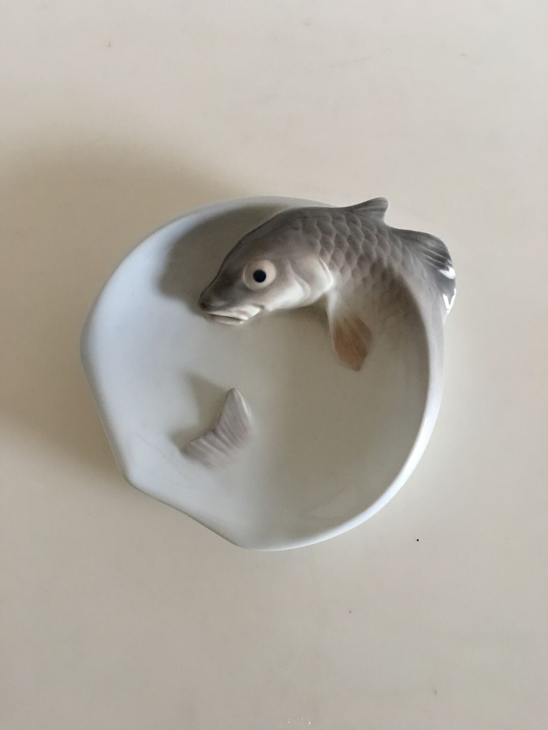Royal Copenhagen Skål med Fisk No 619. 1 Sort. Der er et lille skår på finden fisken. 14.5 cm