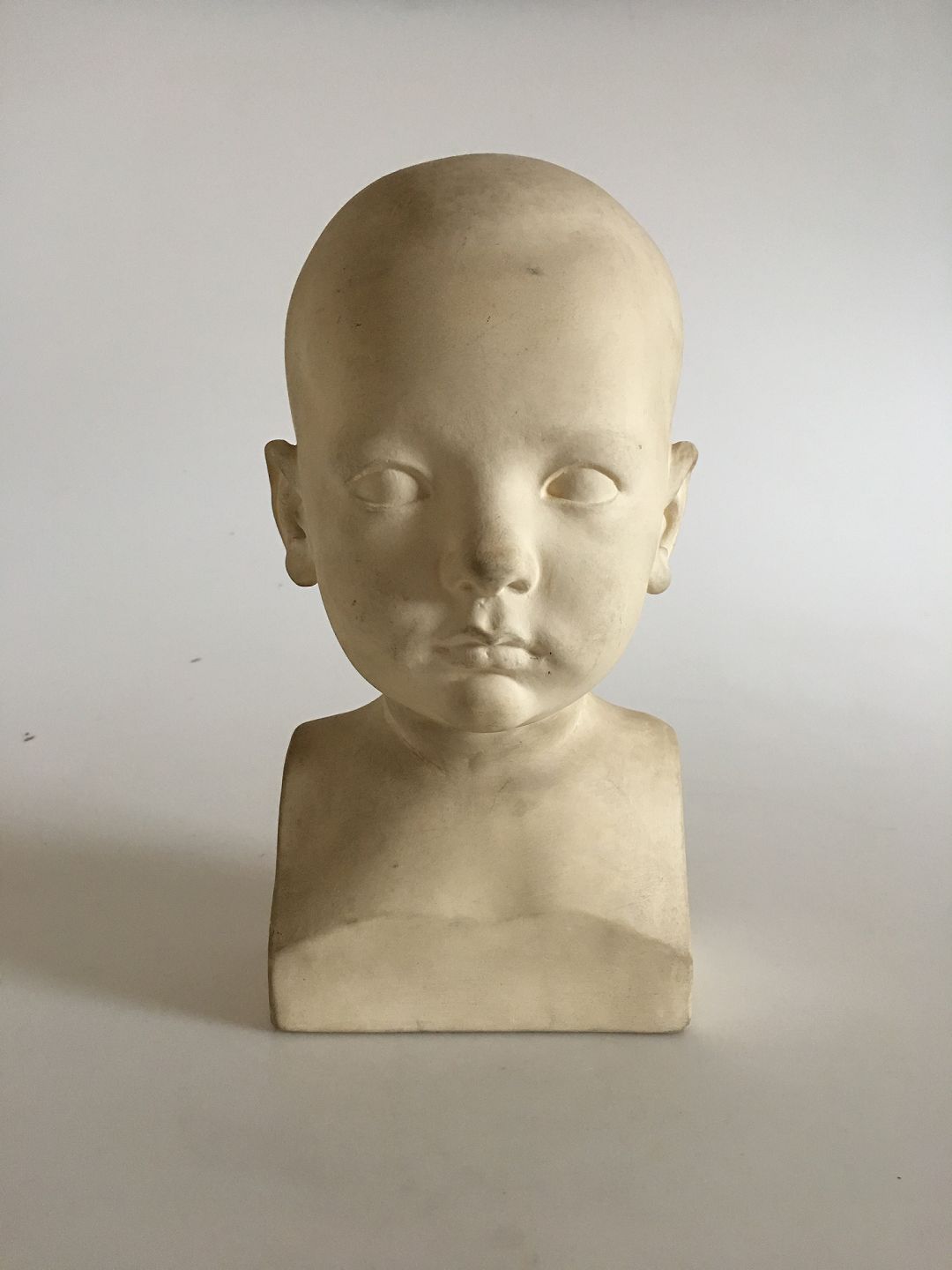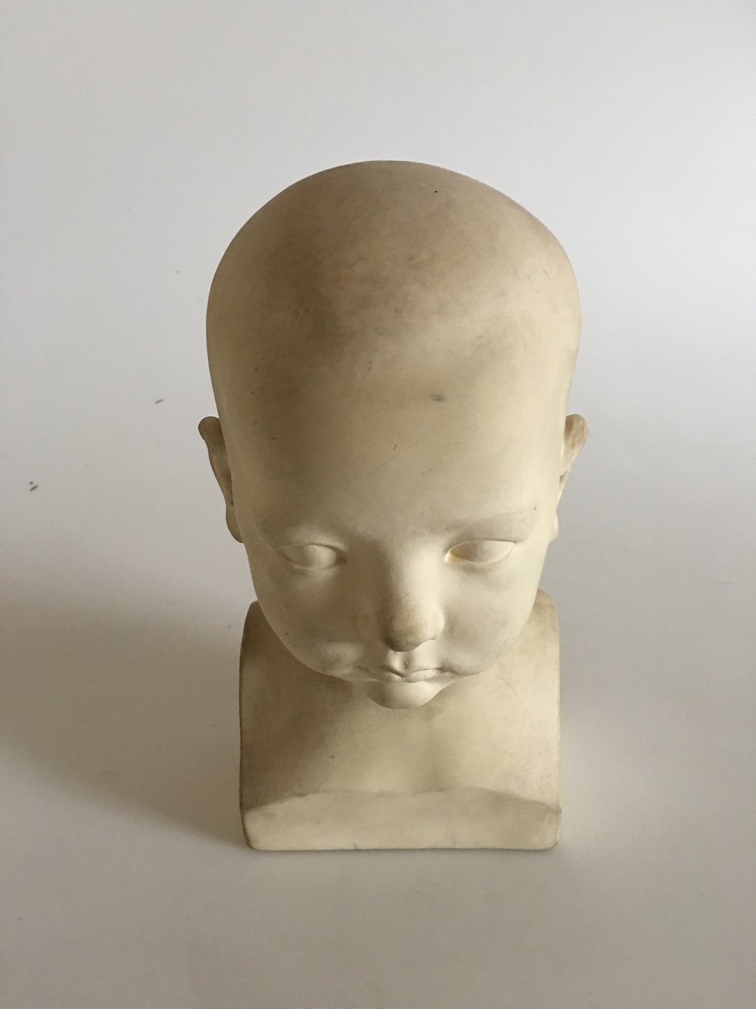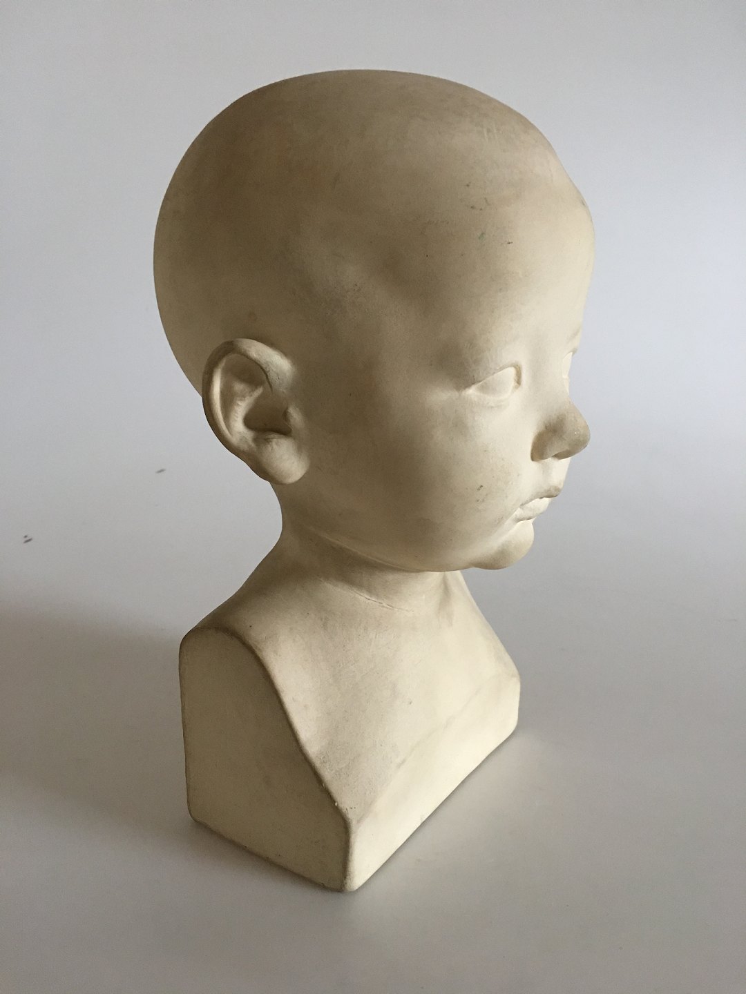 Royal Copenhagen Buste af Barnehoved af Utzon Frank. 24 cm Høj. I fin hel stand med smuk patina.