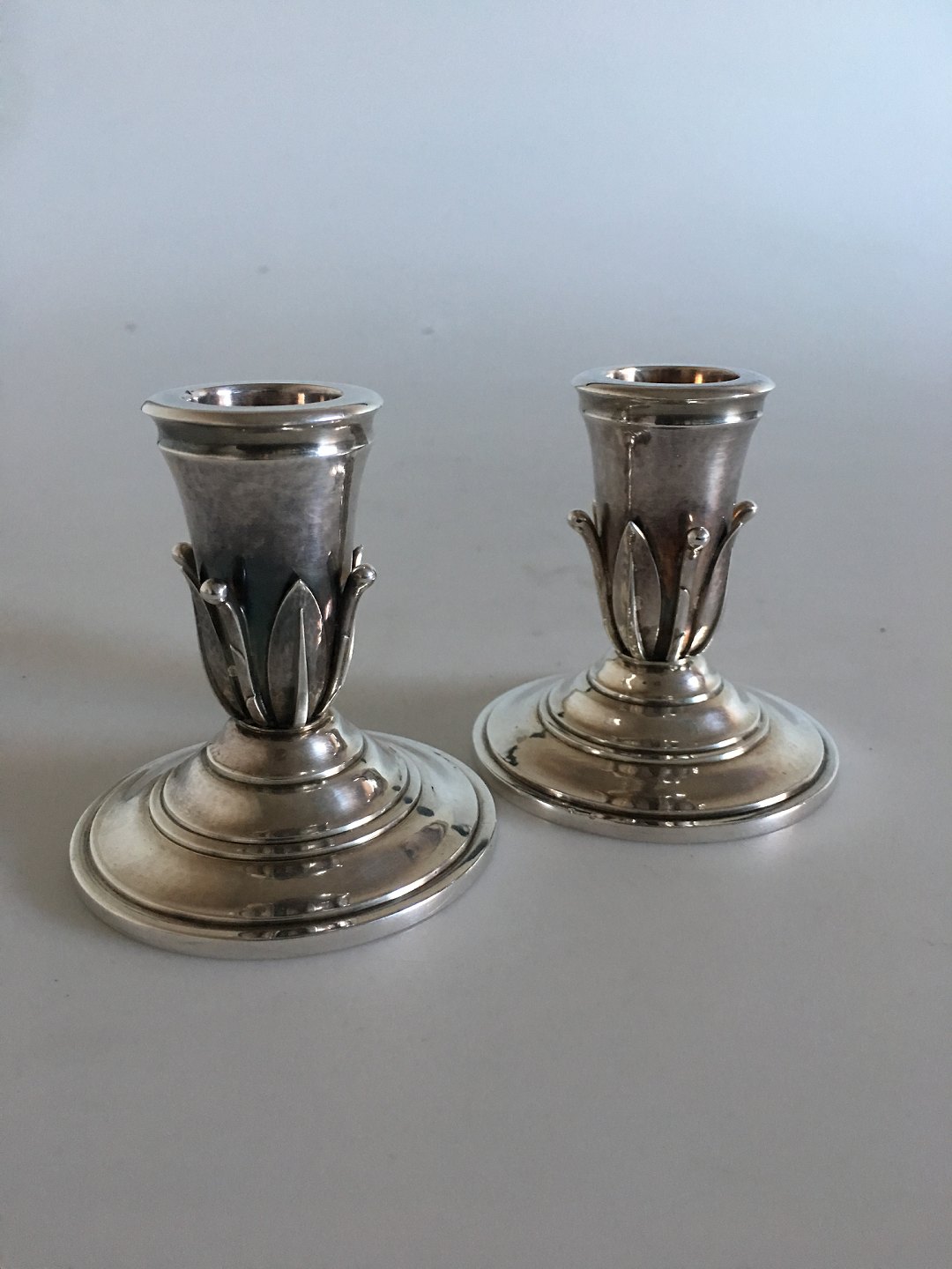 Georg Jensen Sterling Silver Johan Rohde Candlesticks No 612. From after 1945. 7.5 cm H (2 61/64"). Combined Weight 195 grams (6.85 oz)