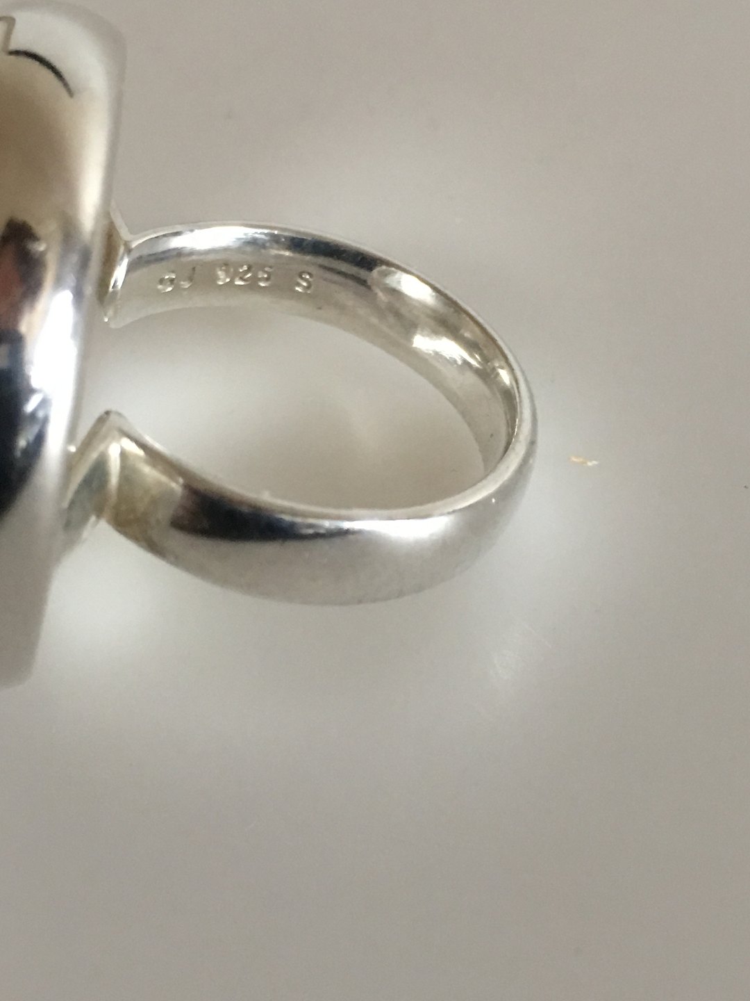 Georg Jensen Sterling Silver Ring No. 466 with Blue Quartz. Measures Ring Size 59 (US size 8 3/4). Ornament measures 2.7 cm diameter (1.06 inch). Weight 20.7 grams (0.73 oz). Designed by Regitze Overgaard.