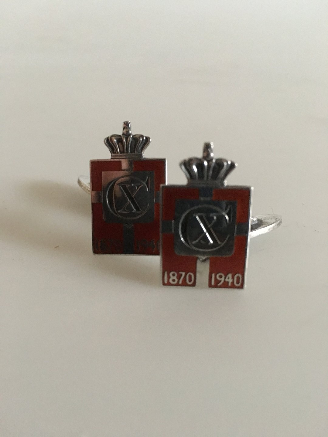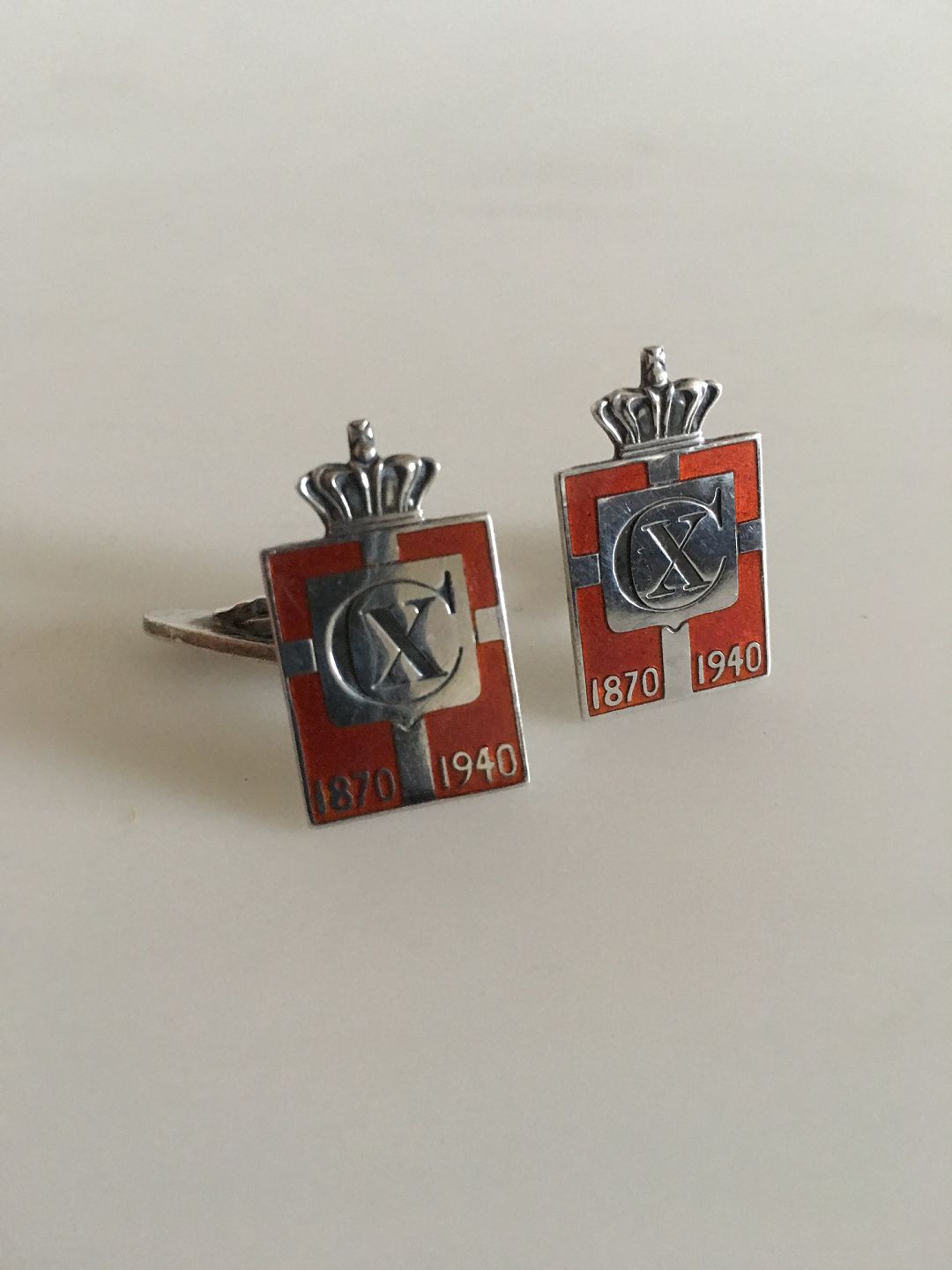 Georg Jensen Konge Mærke Manchetknapper i Sterling Sølv med Emalje. Fra 1932-1945. I fin stand. Vejer tilsammen 13 gram. Måler 2.4 cm x 1.5 cm.