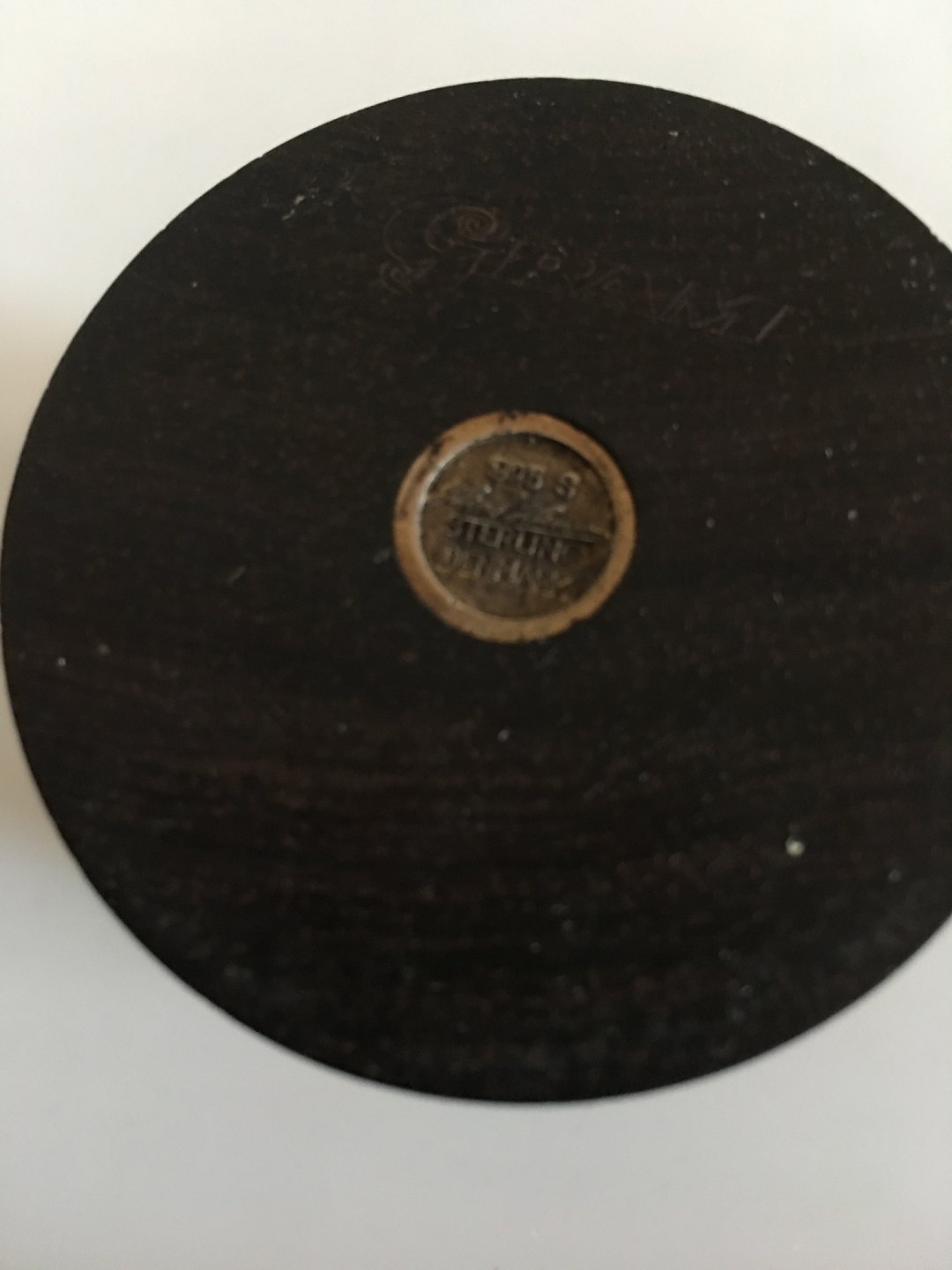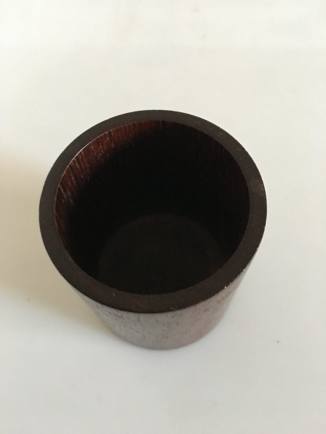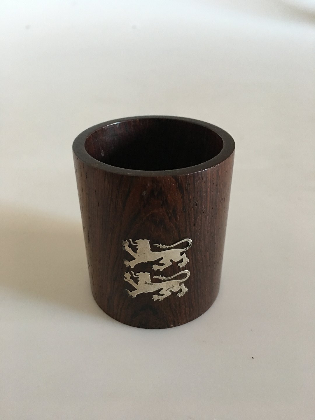Hans Hansen Rundt Bæger i Palisandertræ med To Slesvigske Løver i Sterling Sølv. 6 cm H. 5.4 cm Ø.