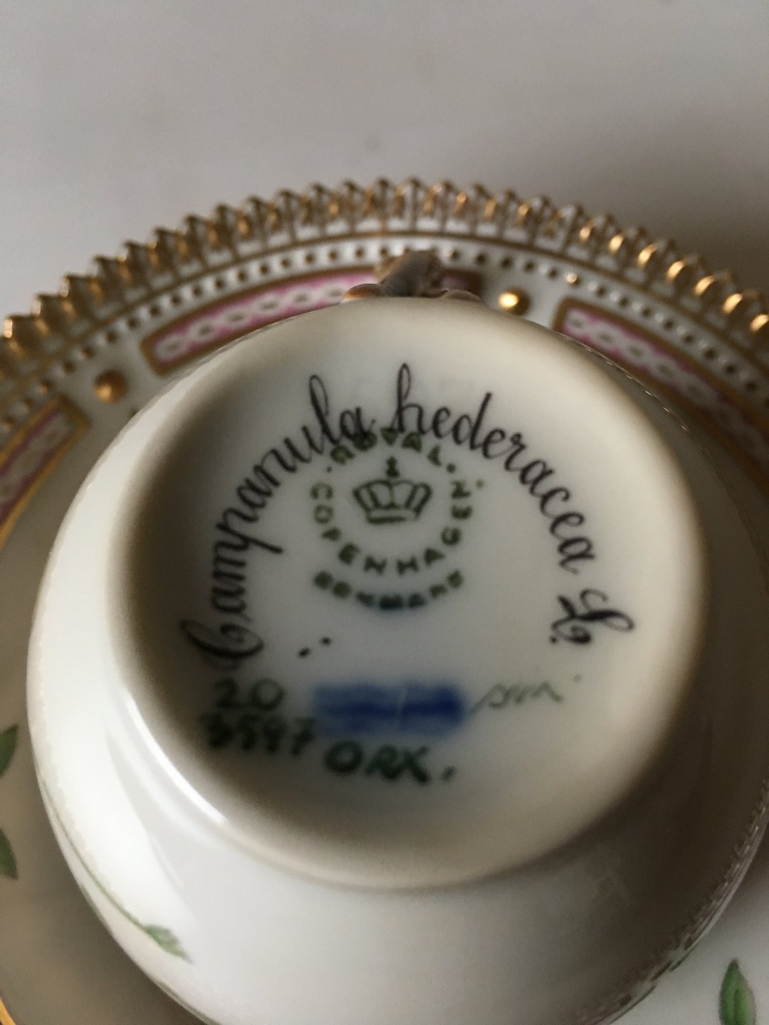 Royal Copenhagen Flora Danica Coffee Cup and Saucer No 20/3597. Latin Name: Campanula Hederacea. 2nd Quality. In perfect whole condition. 7 x 7 cm ( 2 3/4")