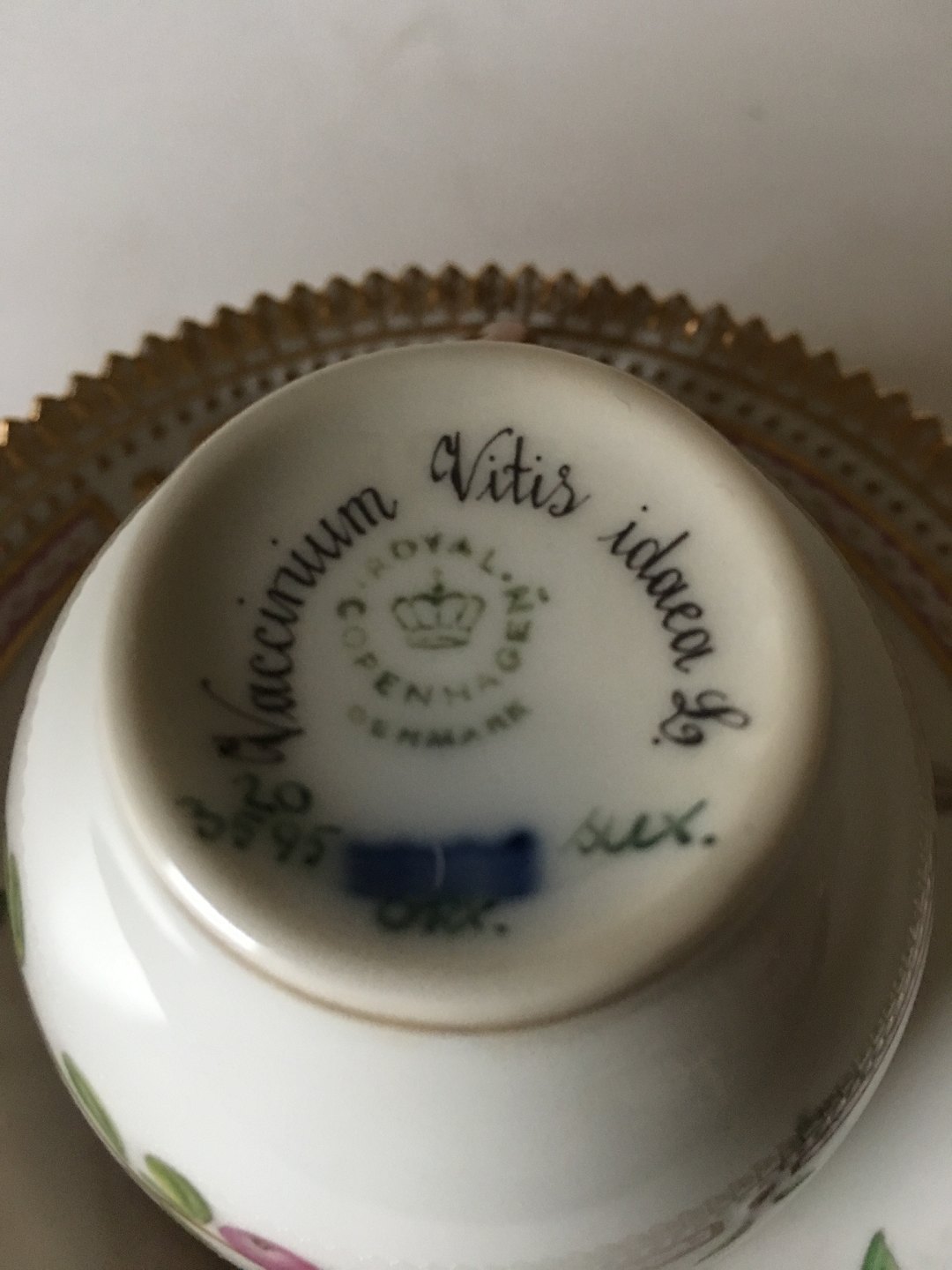 Royal Copenhagen Flora Danica Coffee Cup and Saucer No 20/3595. Latin Name: Vaccinium Vitis Idaea. 2nd Quality. In perfect whole condition. 7 x 7 cm (2 3/4")