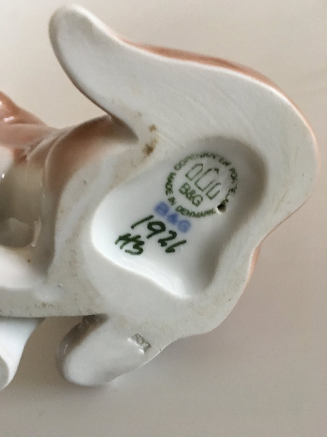 Bing & Grøndahl Figur af Hund No 1921. 1. Sort. I fin og hel stand. 12.5 cm H. Hunden har en varmere og mere brunlig farve end den tilsvarende figur vi har til salg.