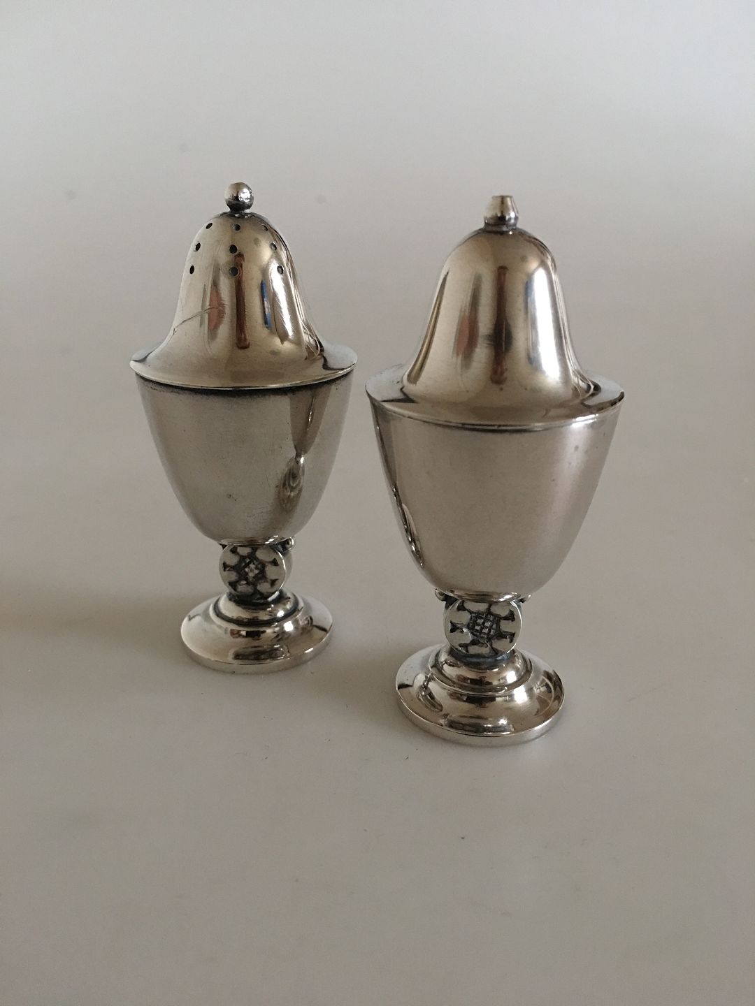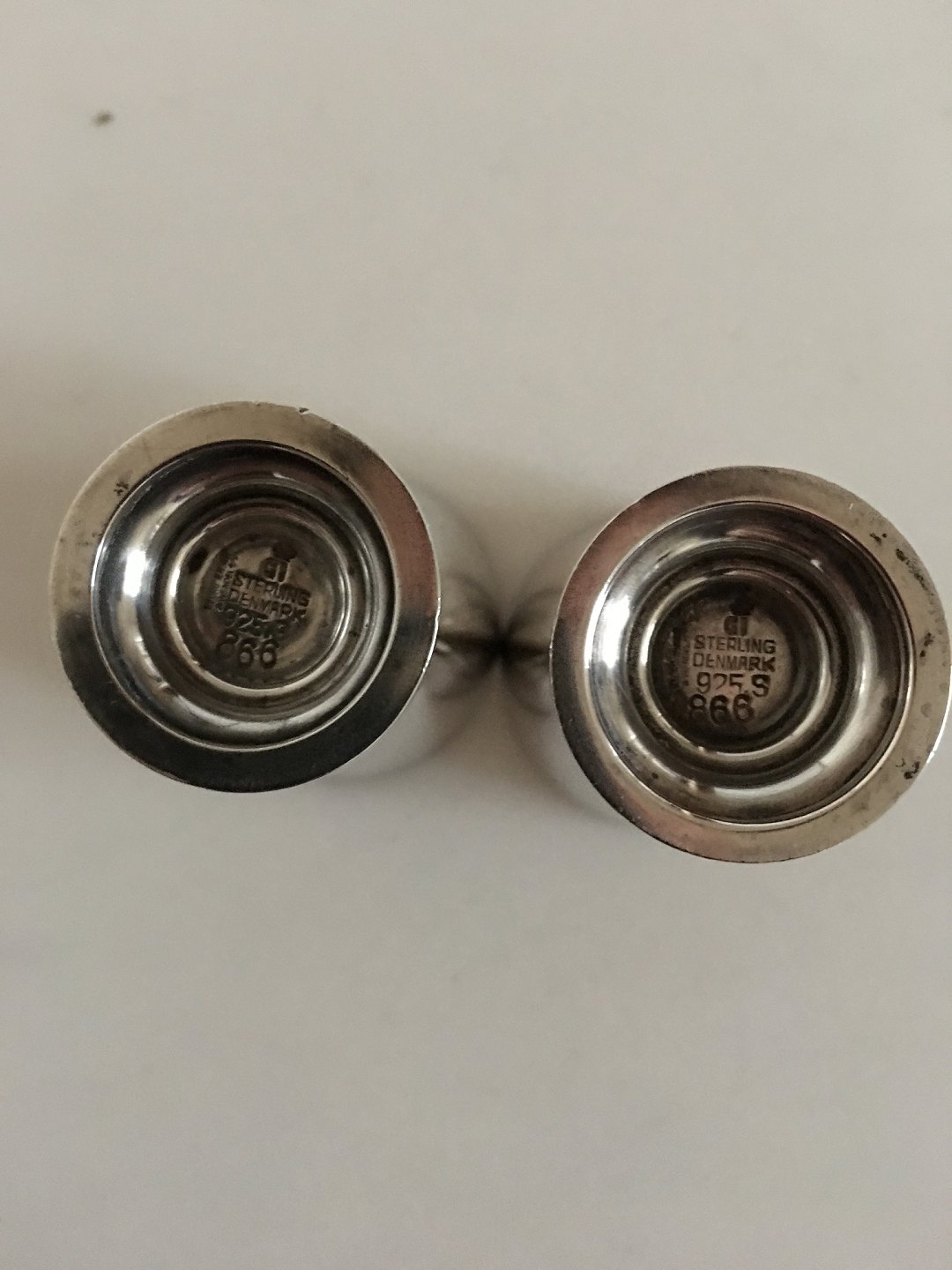 Georg Jensen Sterling Silver Salt & Pepper Set No 866. 7 cm H (2 3/4"). One weighs 35 grams (1.25 oz). From 1915-1932.