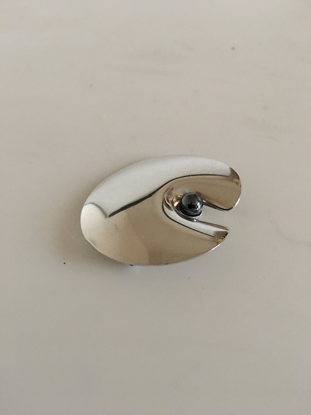 Georg Jensen Sterling Sølv Nanna Ditzel Broche No 351 med Hæmatit Sten. Måler 4,6 cm. Vejer 11 gram. I fin stand.