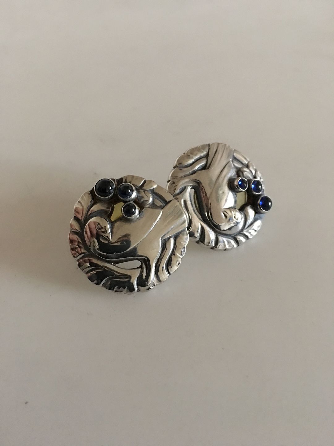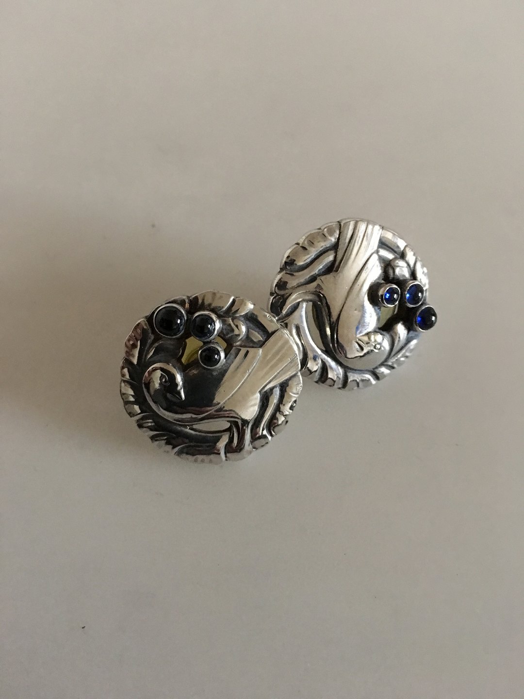 Georg Jensen Sterling Silver Ear Sticks No 66 with Synthetic Saphire. Measures 2.3 cm / 0 29/32 in. Combined weight of 9 g / 0.30 oz. From after 1945.