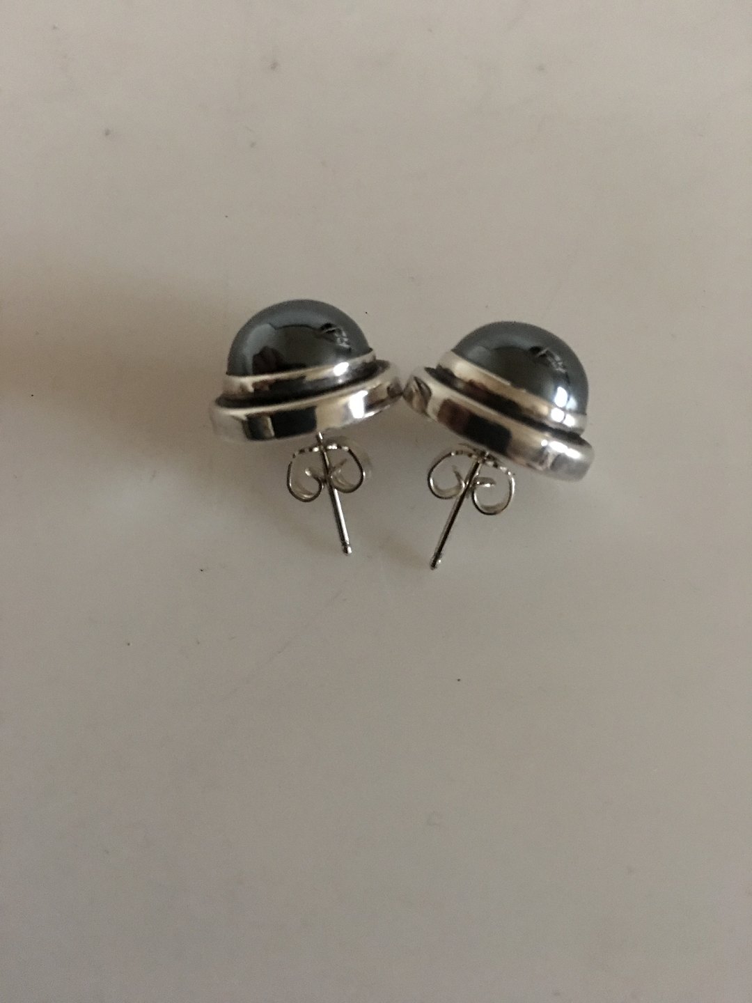 Georg Jensen Sterling Sølv Øreringe No 86D med Hæmatit Sten. Måler 1,2 cm Ø. Vejer tilsammen 12 gram. Fra efter 1945.