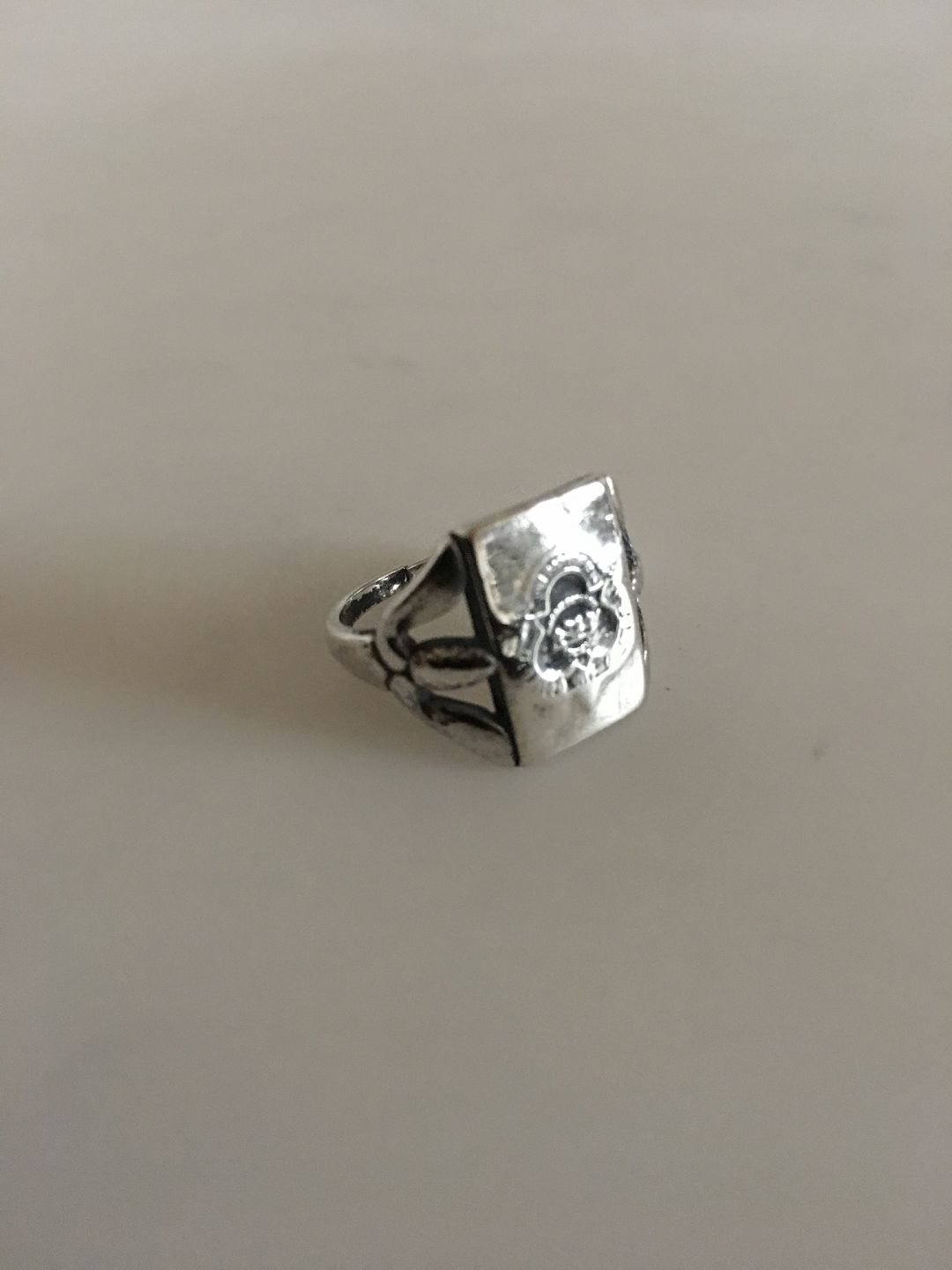 Georg Jensen Vintage Sterling Silver Wilson College Class Signet Ring. Ring Size 52 / US 6. Weighs 5 g / 0.20 oz. With latin text: Wilsonensis Sigillum Collegii - Ars Scientia et Religio. Used with wear.