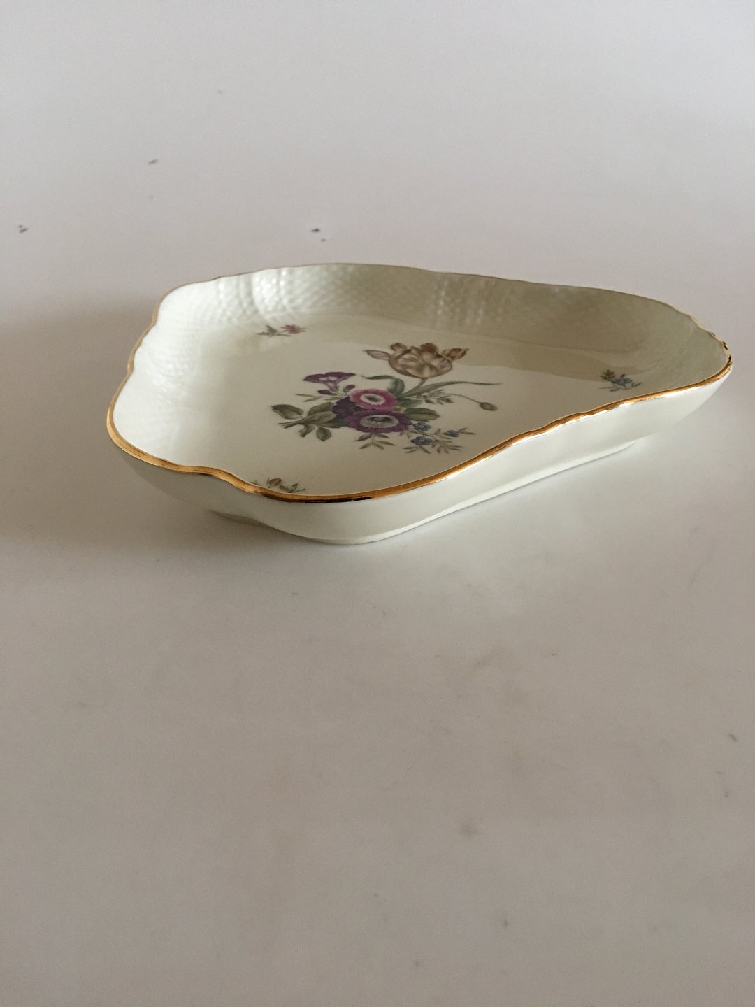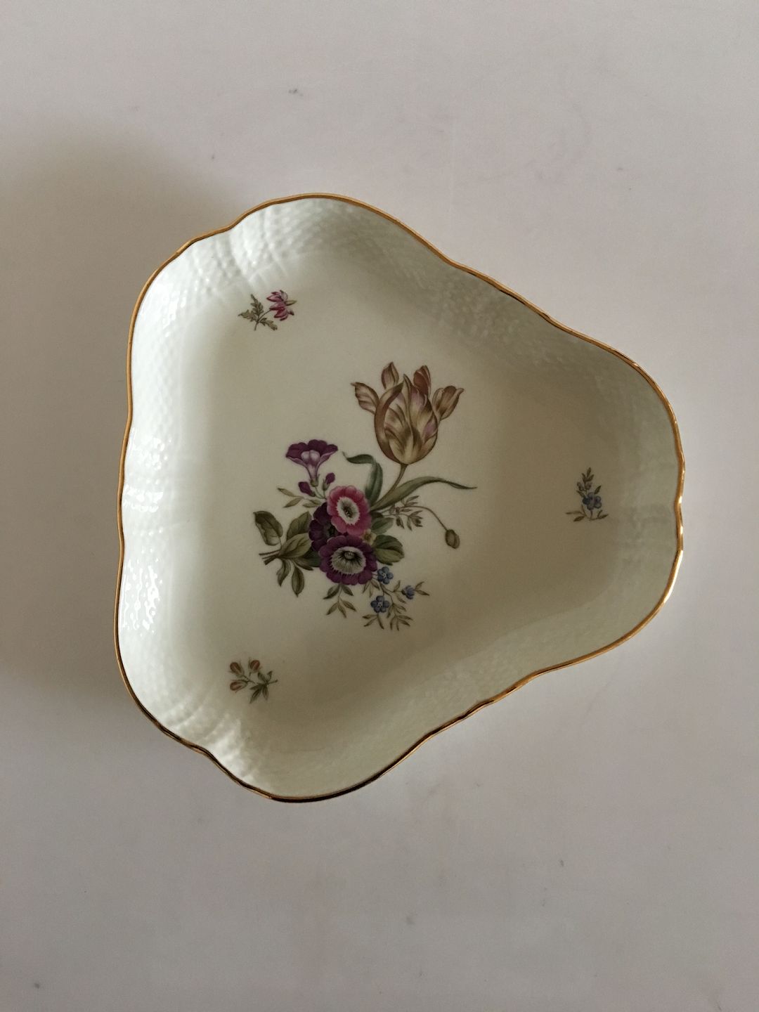 Royal Copenhagen Frijsenborg Triangle Cake Dish No 1526. 21 cm dia. In perfect condition. Creme colored with flower motifs named after the nobel county of Frijsenborg