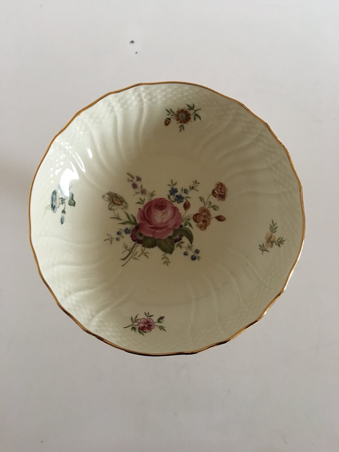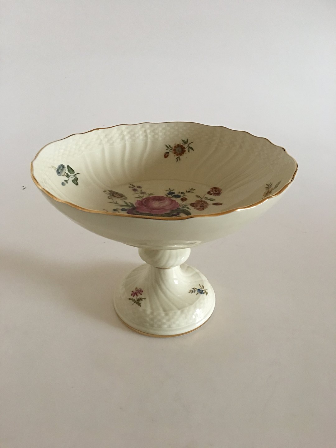 Royal Copenhagen Frijsenborg Cake Bowl on Tall Foot No 1528. 15.5 cm H. 21 cm dia. Creme colored with flower motifs named after the nobel county of Frijsenborg