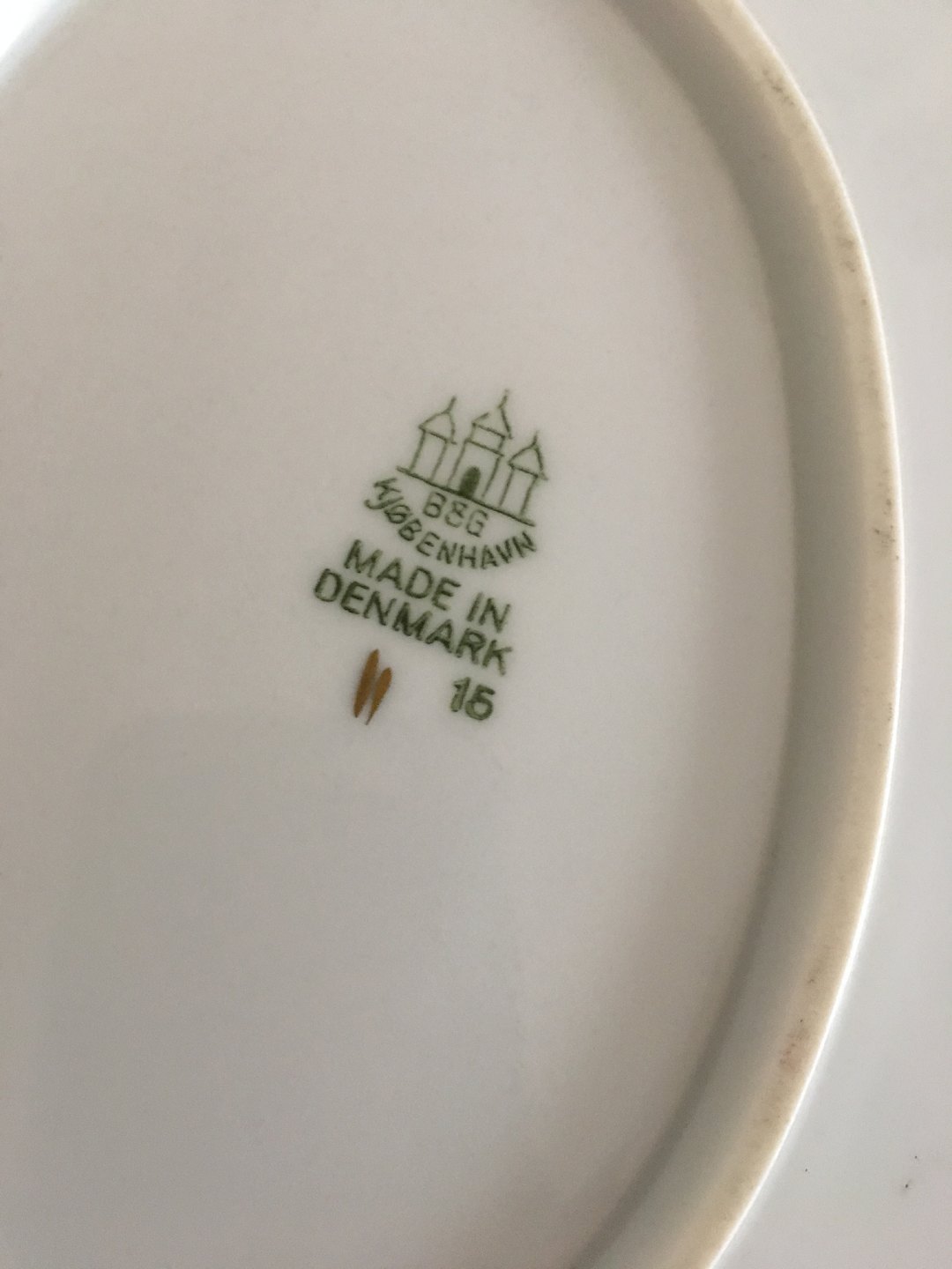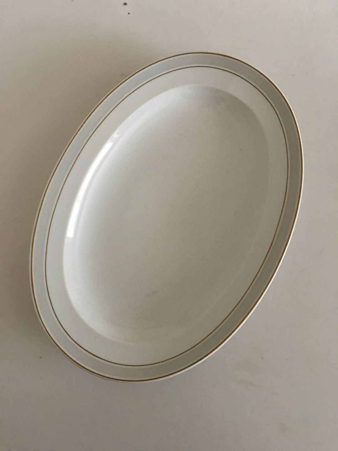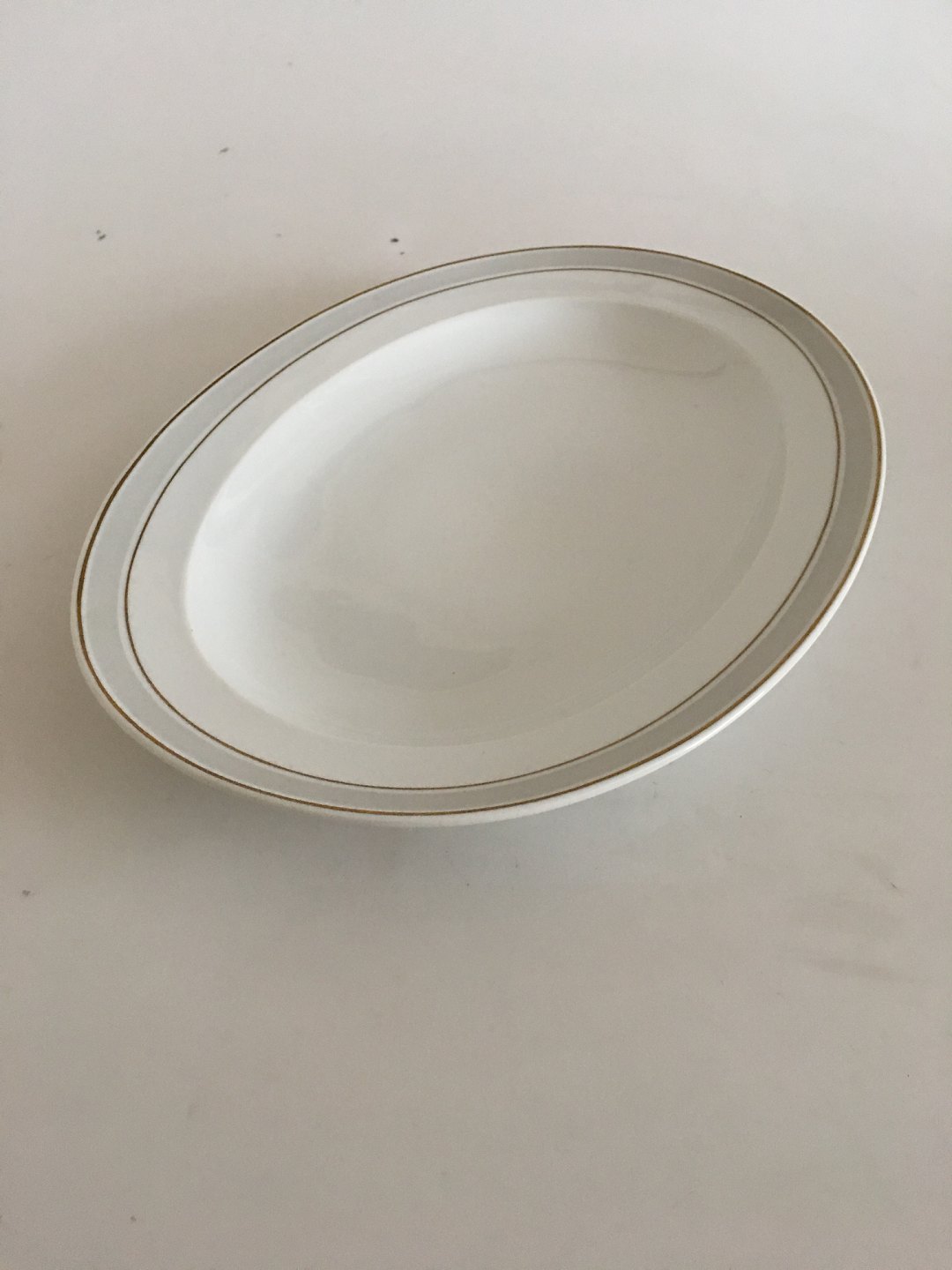 Bing & Grondahl Tiber Oval Serving Tray No 15. 40.5 cm. White med Light Grey Border and Gold Edge. 2nd Quality. In perfect condition.