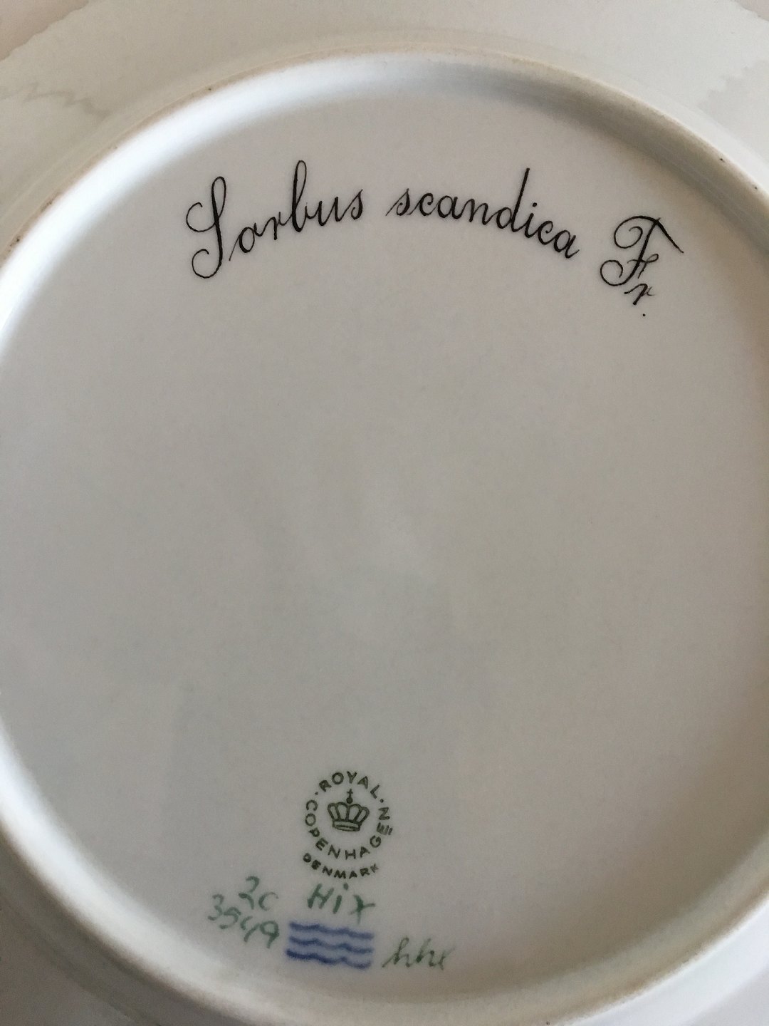 Royal Copenhagen Flora Danica Spisetallerken No 3549. 25.5 cm �. 1. Sortering. I perfekt stand. Latinsk Navn: Sorbus Scandica Fr.