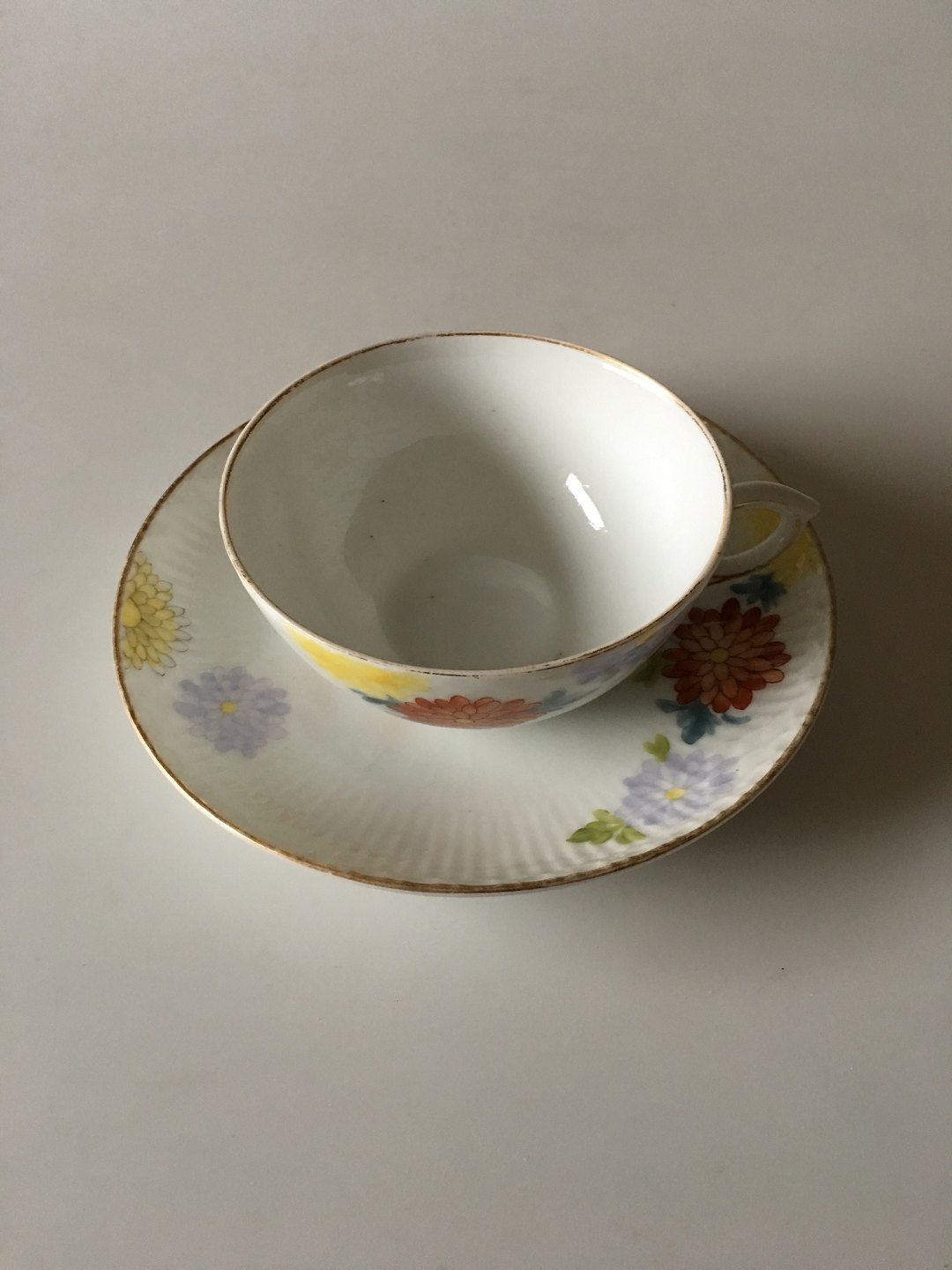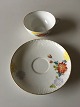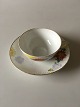 Royal Copenhagen No 93 White Half Laced w. Flowers and Gold Teacup and Saucer. Teacup measures 10 cm dia (3 15/16"). In good whole condition. The gold has some wear. Rare dinner service from 1894-1898. Handpainted