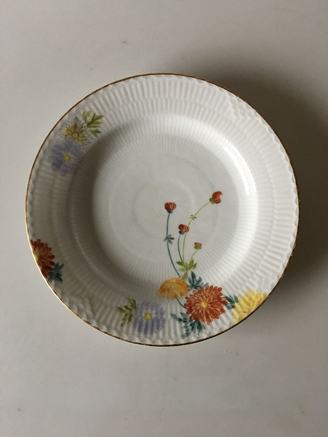Royal Copenhagen No 93. Asters White Half Lace w. Flowers and Gold Dinner Plate. 25.5 cm (10 3/64") In good whole condition. The gold has some wear to it. Rare dinner service from 1894-1898. Handpainted