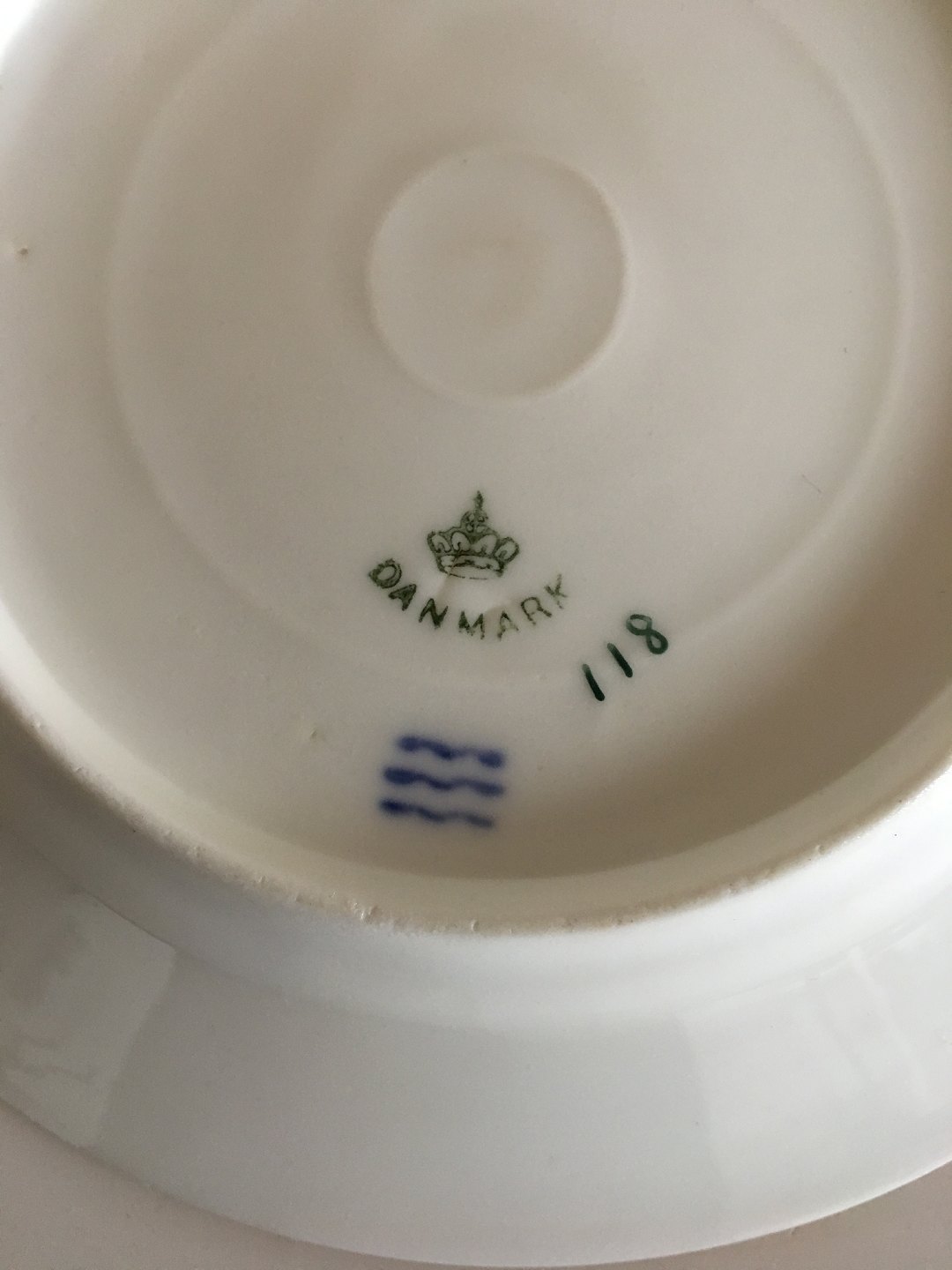 Royal Copenhagen No 118 Dinner Plate w. Golden Peacock Feather Ornament. In whole condition, the gold has quite some wear to it. Antique, Rare Dinner Service Pattern from Royal Copenhagen