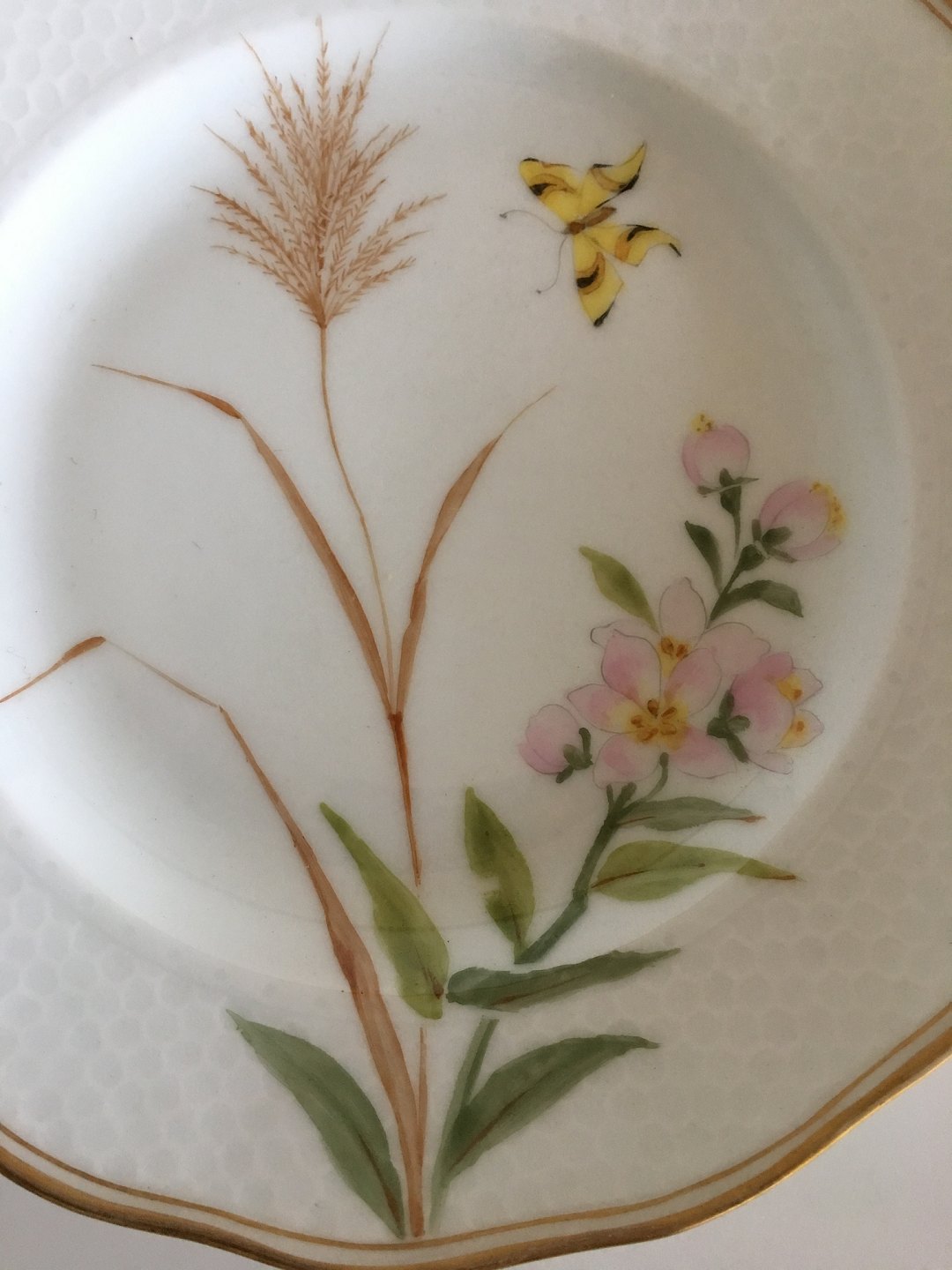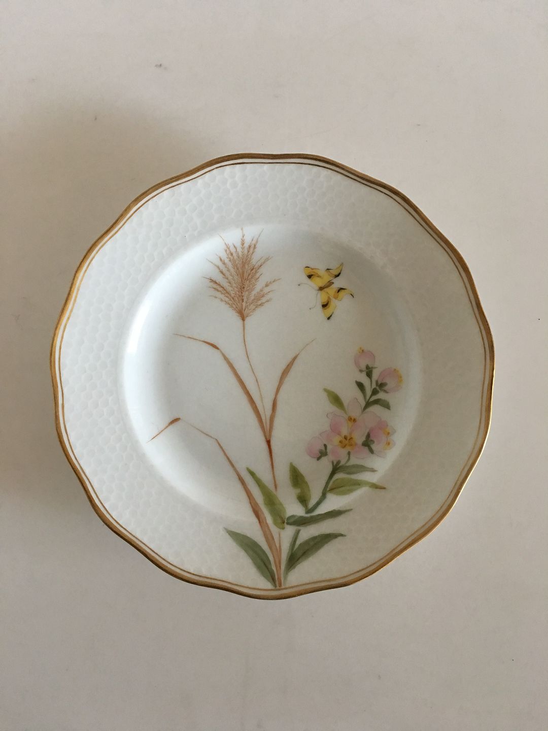 Royal Copenhagen Plate No 166/2031 with Handpainted Flower and Butterfly. 21 cm (8 17/64") In nice whole condition, with only some minor wear to the gold
