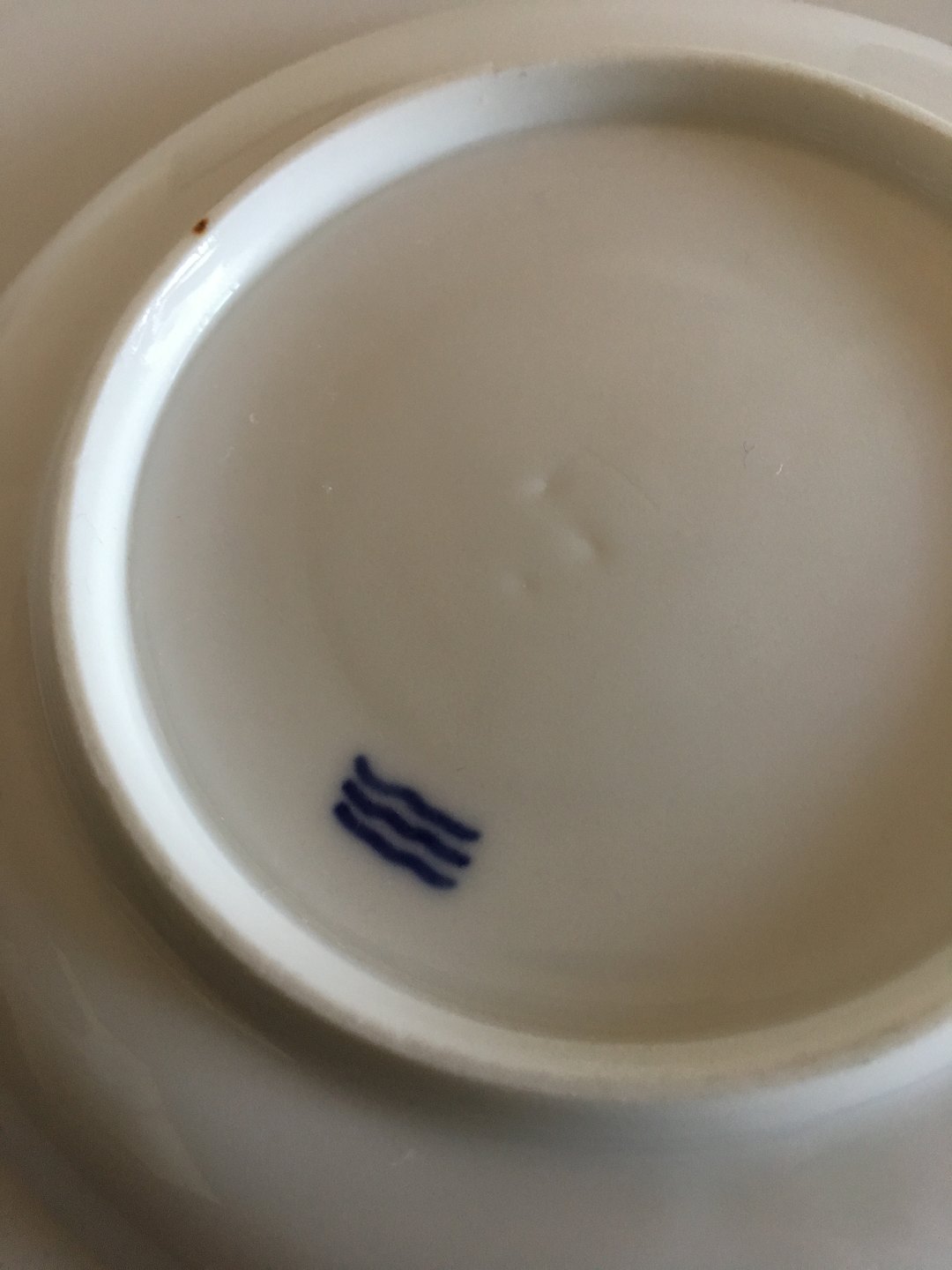 Royal Copenhagen White Ba Coffee Cup and Saucer. Measures 8 cm dia. 4 cm H. In nice whole condition. There are a few greyish spots / burning mistakes in the white porcelain. Appears well