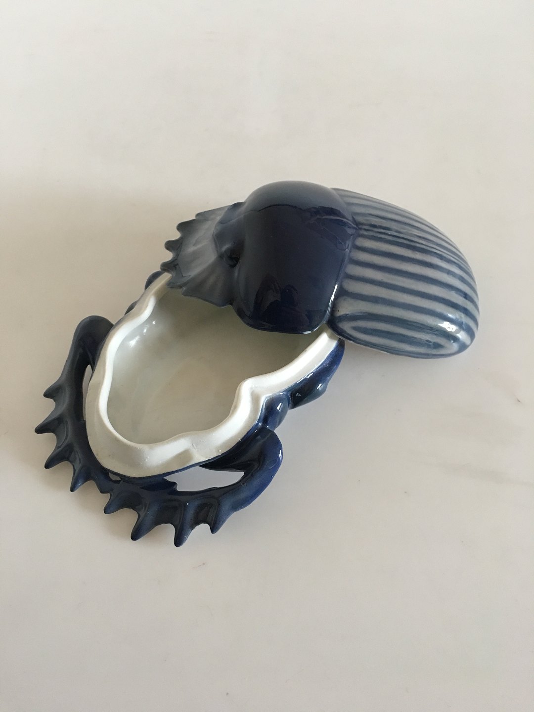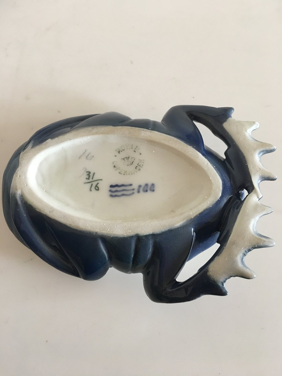 Royal Copenhagen Skarabæ Lågskål No 31/16. I delvis blank og halvmat blålig glasur. I flot hel stand. 12 x 10 cm