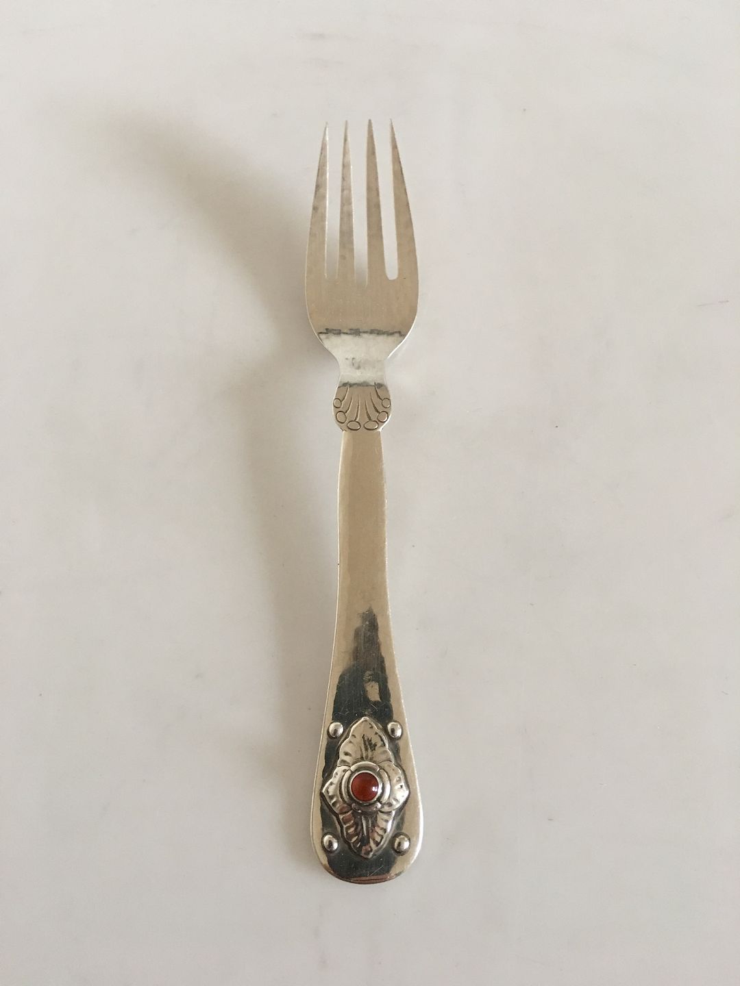 Georg Jensen Sterling Silver 75 Year Jubilee Fork with Carnelian Stone. 15.2 cm L (5 63/64"). Manufactured in 1979.