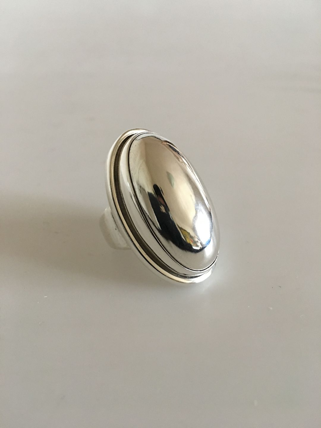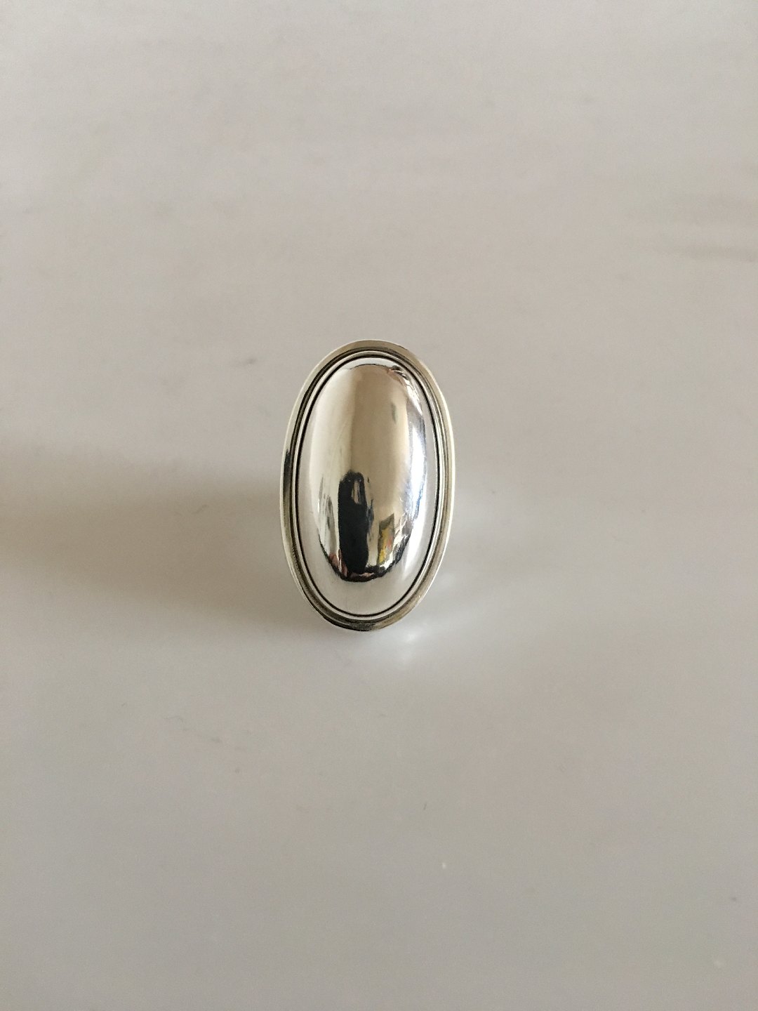 Georg Jensen Sterling Sølv Ring No 46E. Oval ring der måler 3,5 cm. Med GJ stempler fra efter 1945. Ringstørrelse 49. Vejer 16,8 gram