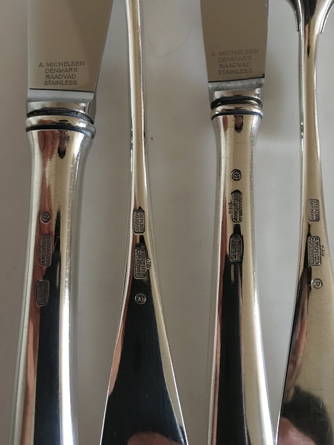 Anton Michelsen "Ida" Sterling Sølv Bestik Sæt til 12 Pers. 32 dele. Designet af Ole Hagen. Sættet består af følgende dele;