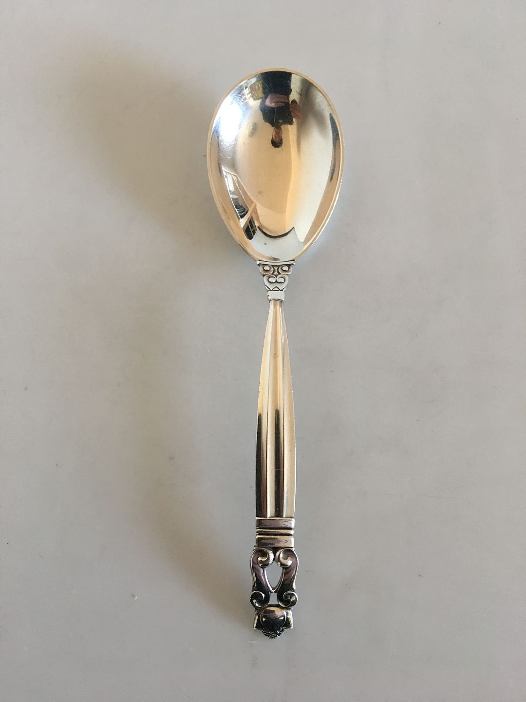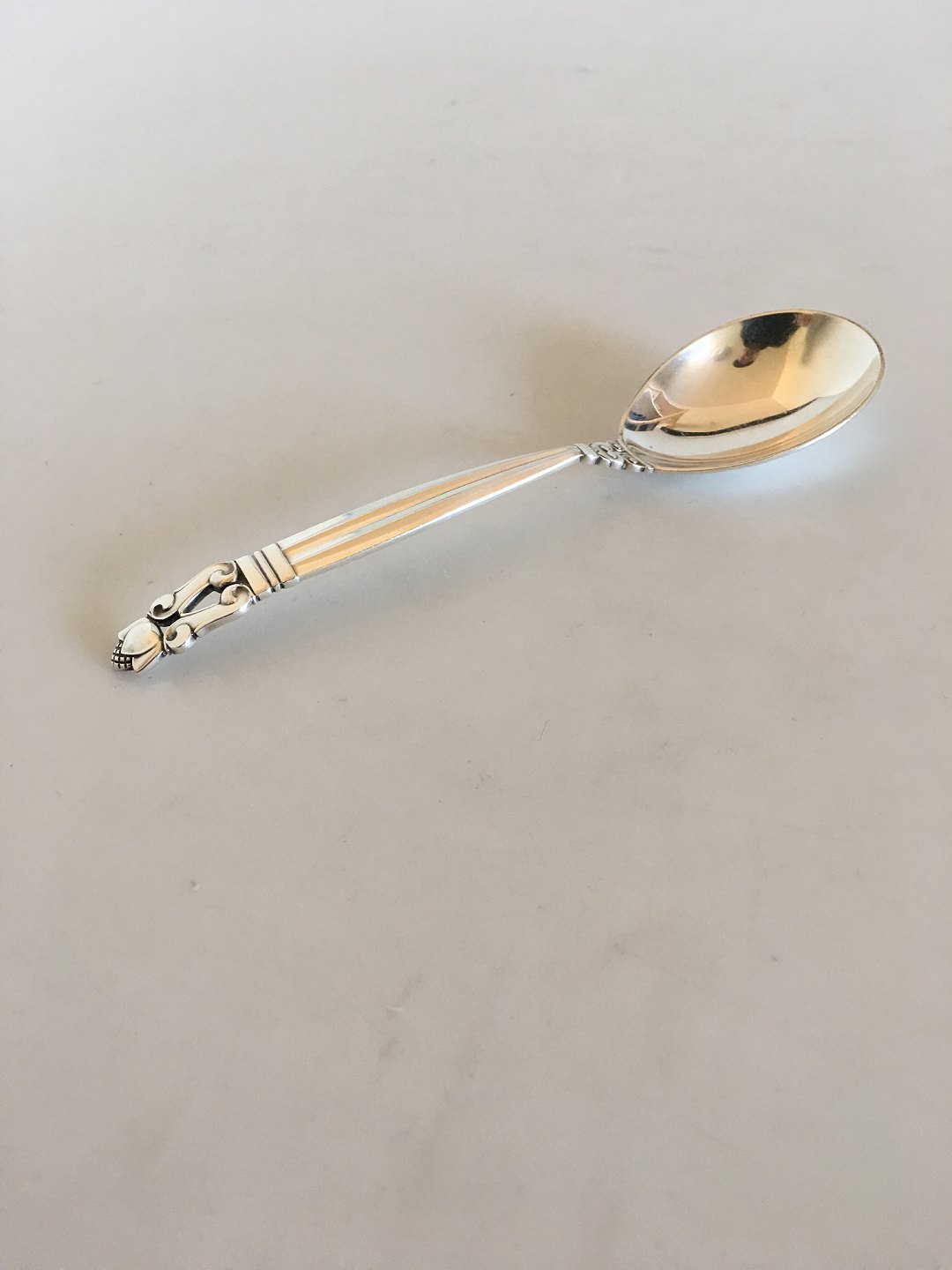 Georg Jensen Sterling Silver Acorn Curved Jam Spoon No 165. Measures 14.8 cm / 5 53/64 in.