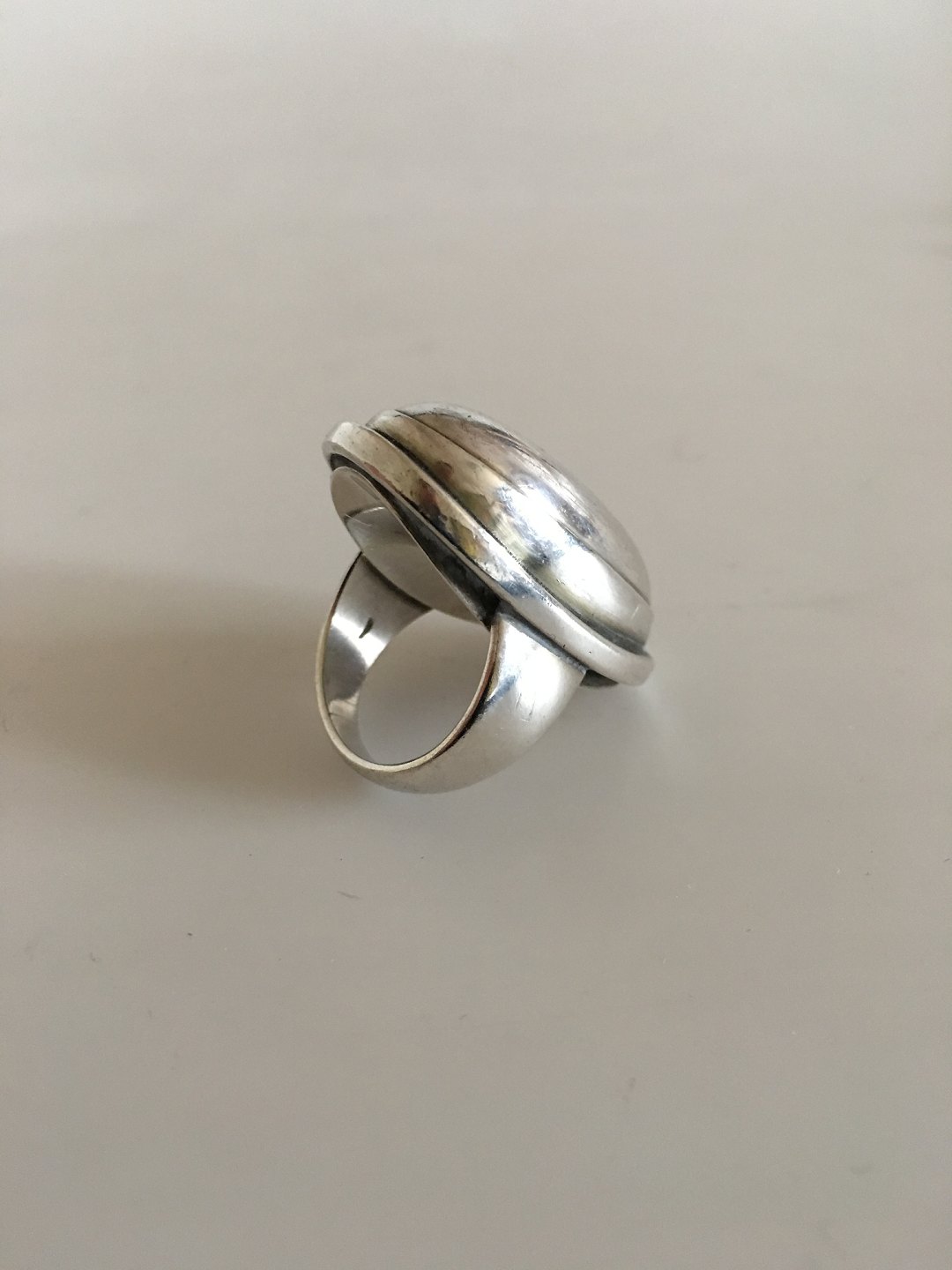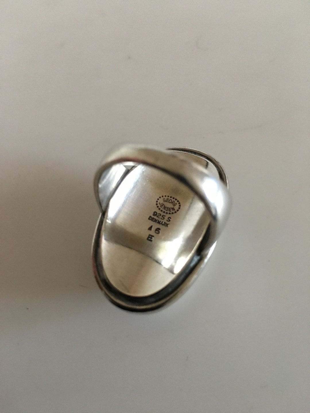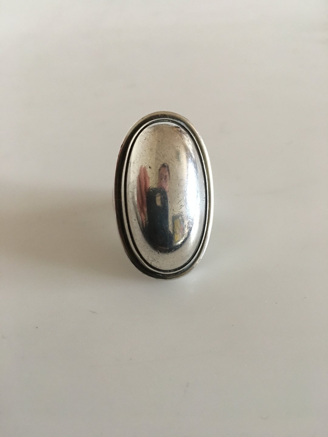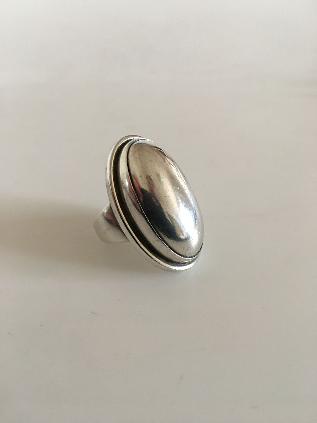 Georg Jensen Sterling Sølv Ring No 46E med Sølvsten. Ringstørrelse 52. Det ovale sølvstykke måler ca. 3.5 cm. Vejer 18 gram.