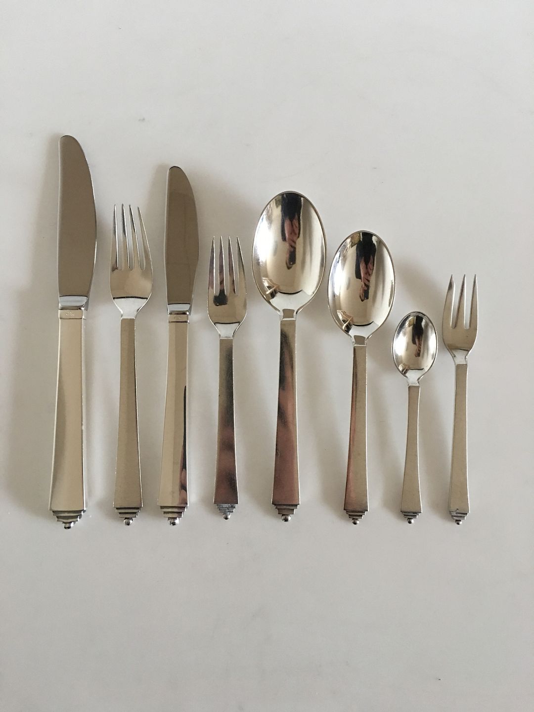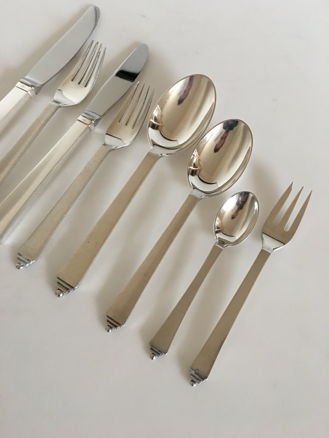 Georg Jensen Sterling Silver Pyramid Flatware Set for 6 People. 48 Pieces. The set consists of the following items;