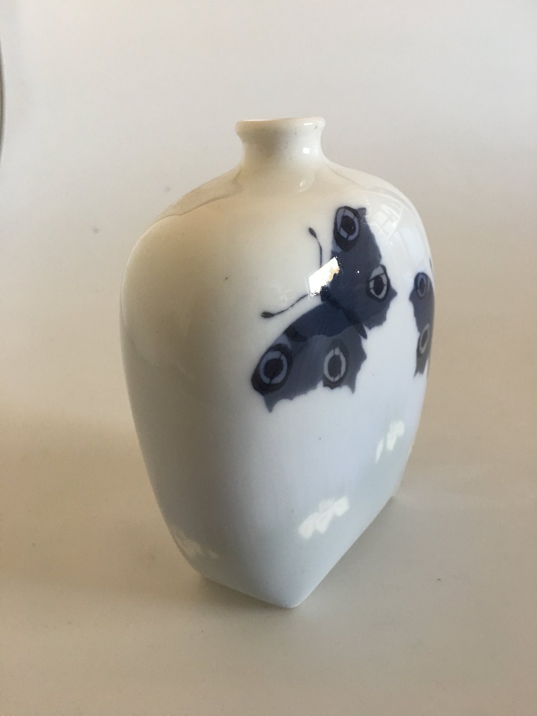 Royal Copenhagen Vase No 188/1340 with Butterfly Motif. 1st Quality. In nice and whole condition. 14 cm H (5 33/64").