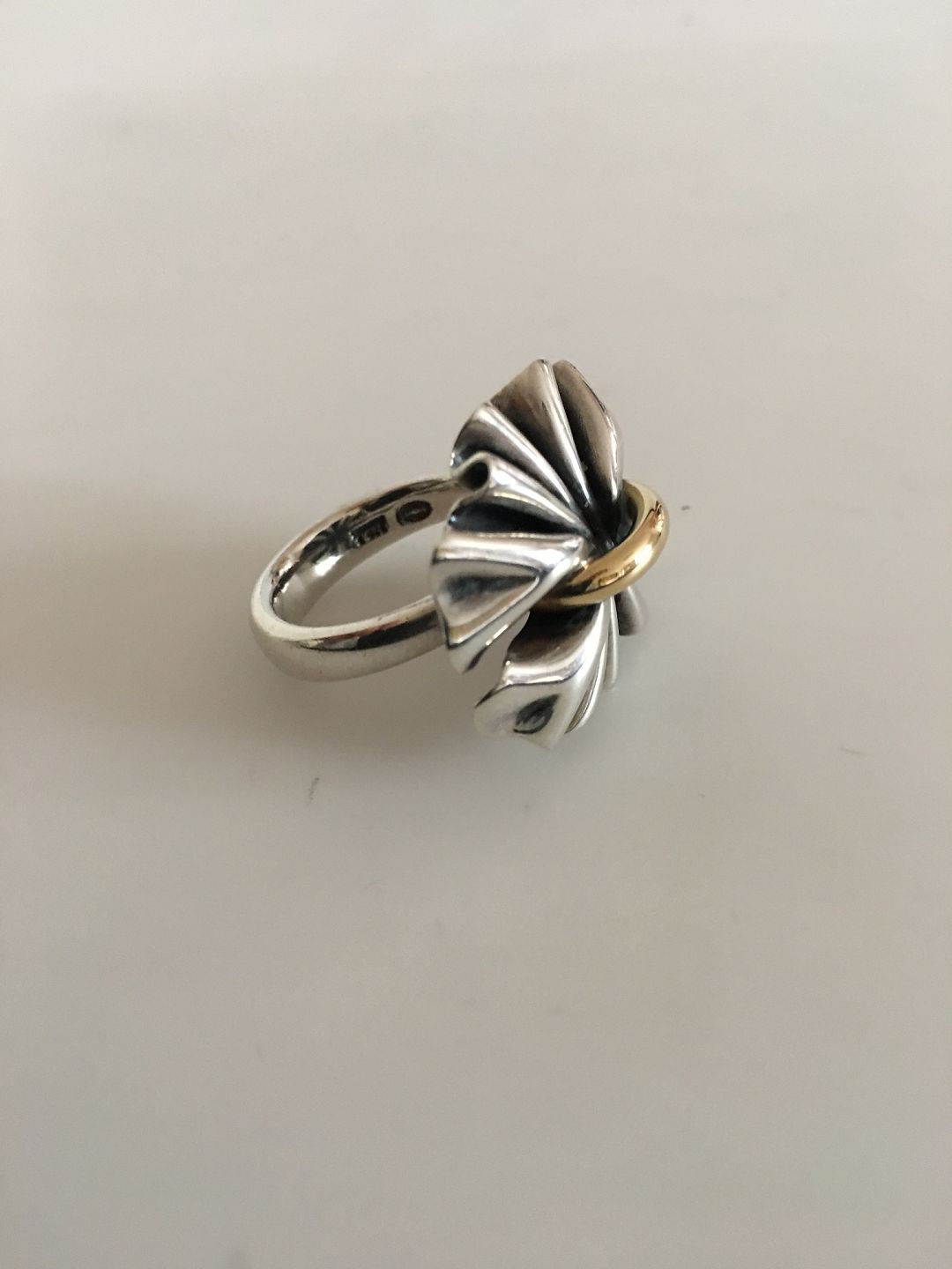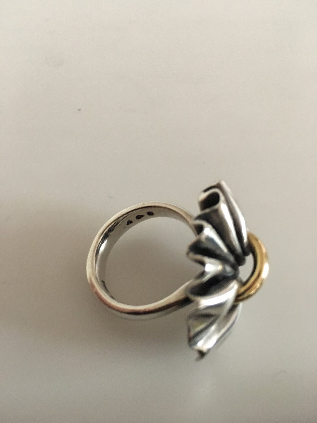 Georg Jensen Sterling Sølv og 18K Guld Lene Munthe Ring No 400. Ring Str. 57. (US 8) Vejer 14 gram. Ornament måler 2.8 x 2 cm dia.