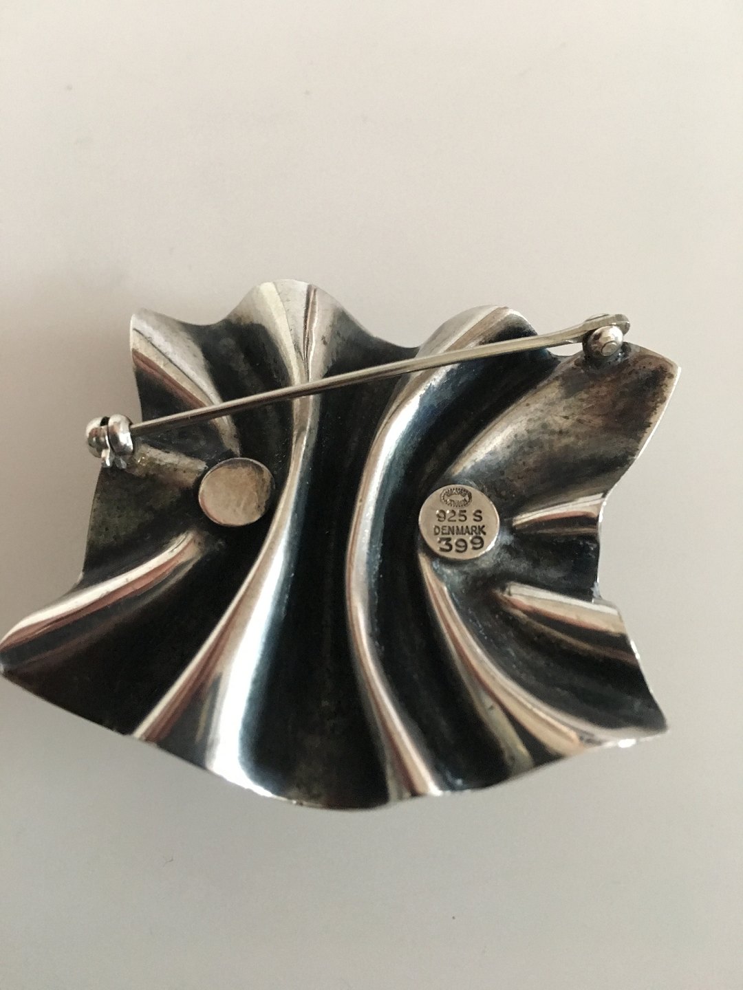 Georg Jensen Sterling Silver and 18K Gold Lene Munthe Brooch No 399. Measures 5 cm / 1 31/32 in. x 3.6 cm / 1 27/64 in. Weighs 36 g / 1.25 oz.