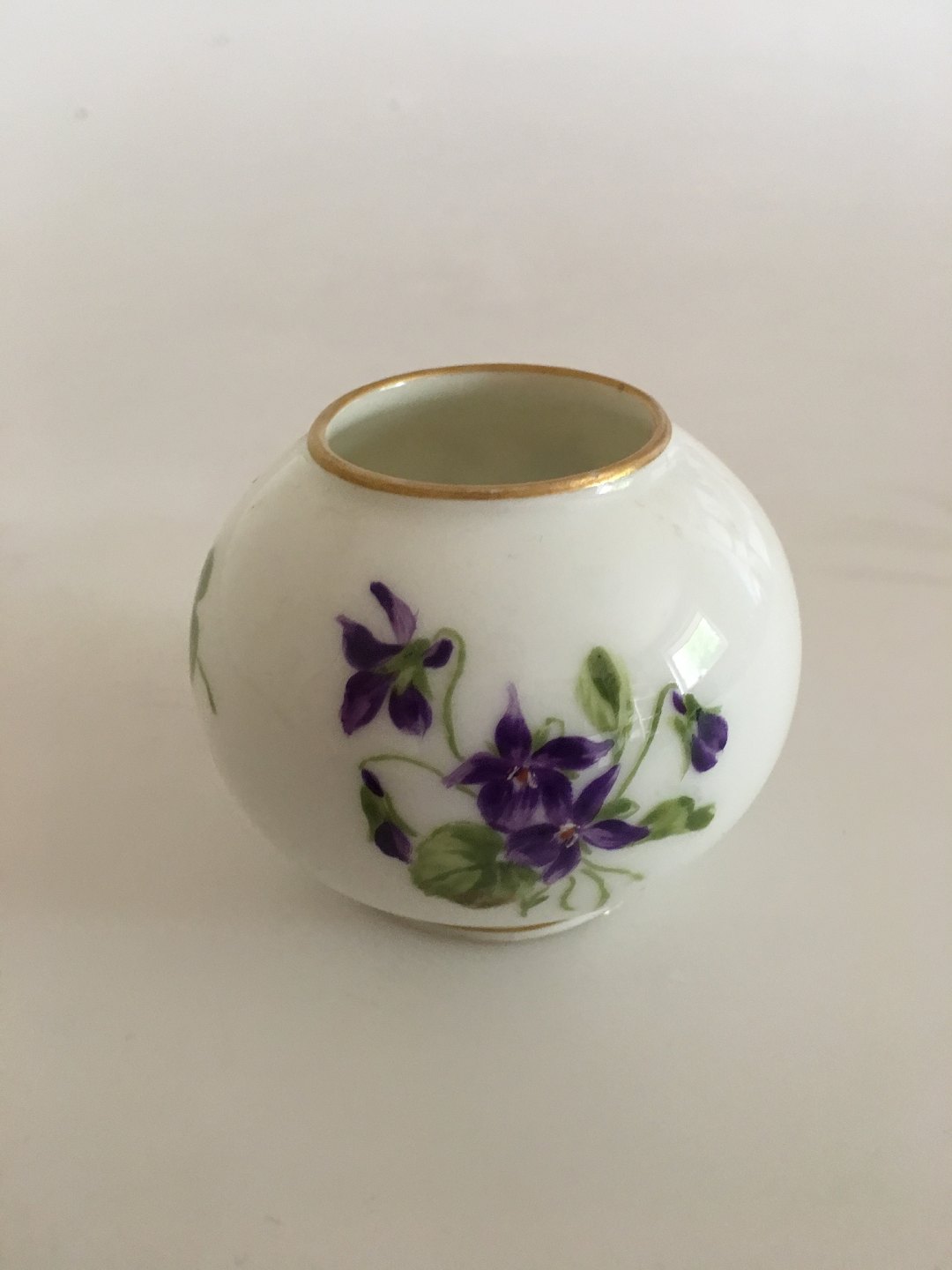 Royal Copenhagen Vase med Lilla Blomstermotiv. 6 cm H. 1. Sortering. I god stand