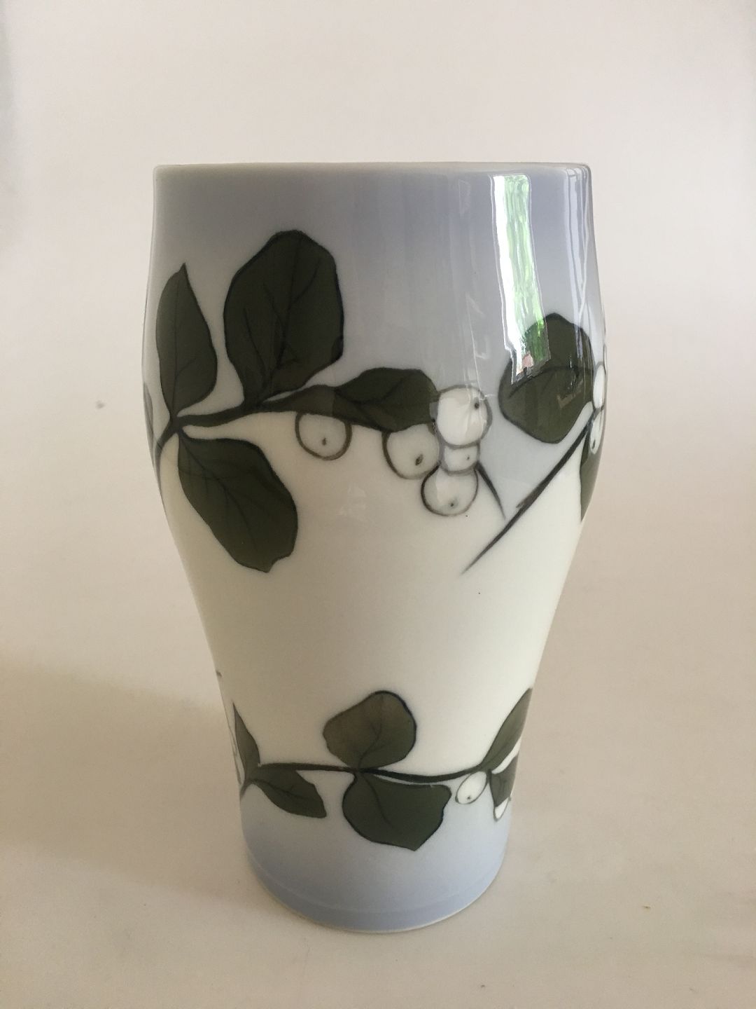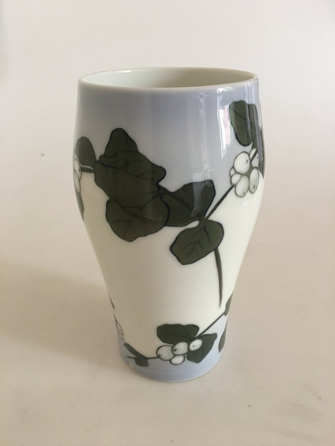 Royal Copenhagen Vase No 204/65A med Snebær Motiv. 21 cm H. 1. Sortering. Vasen har et lille skår nede ved foden (se billede).
