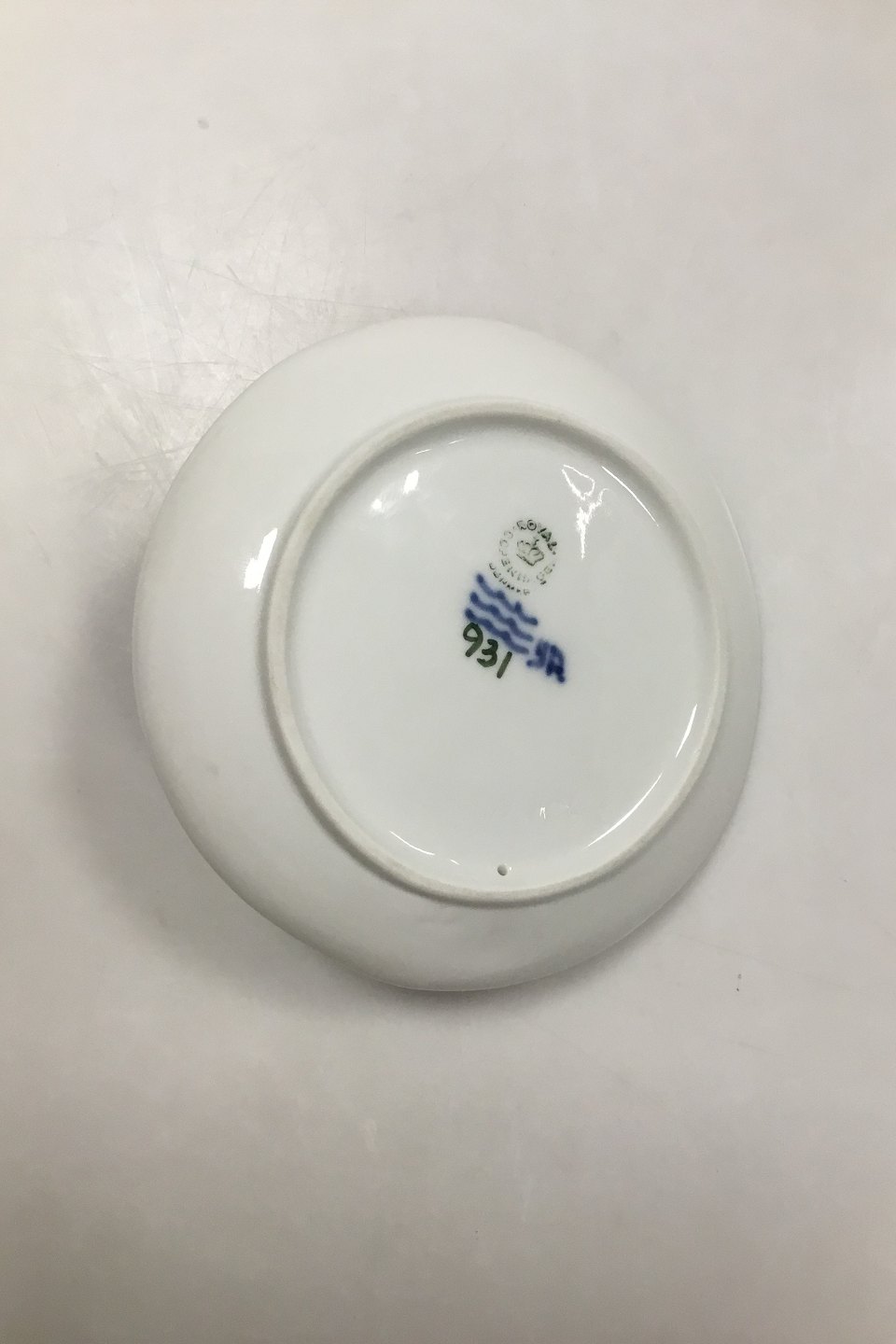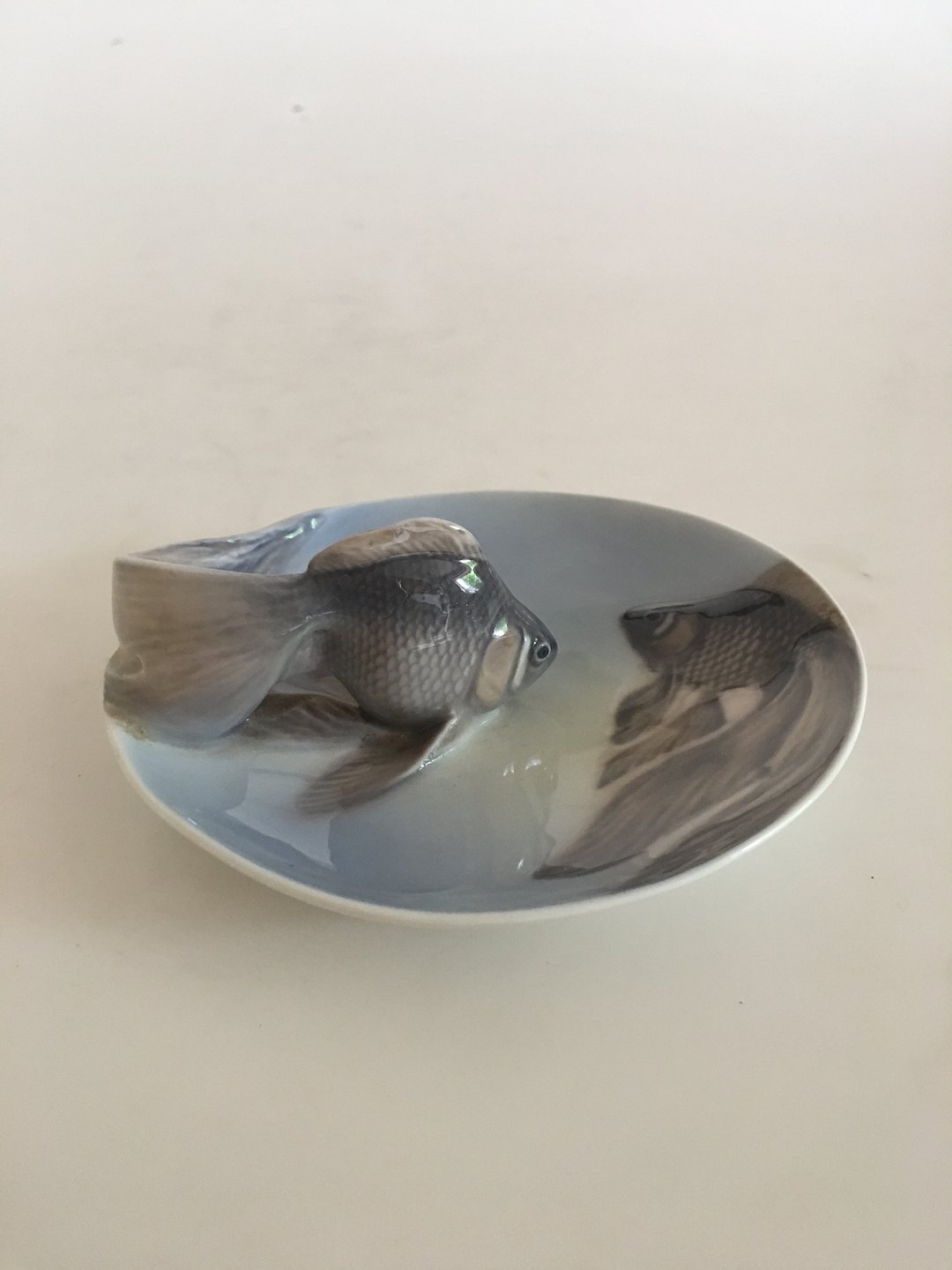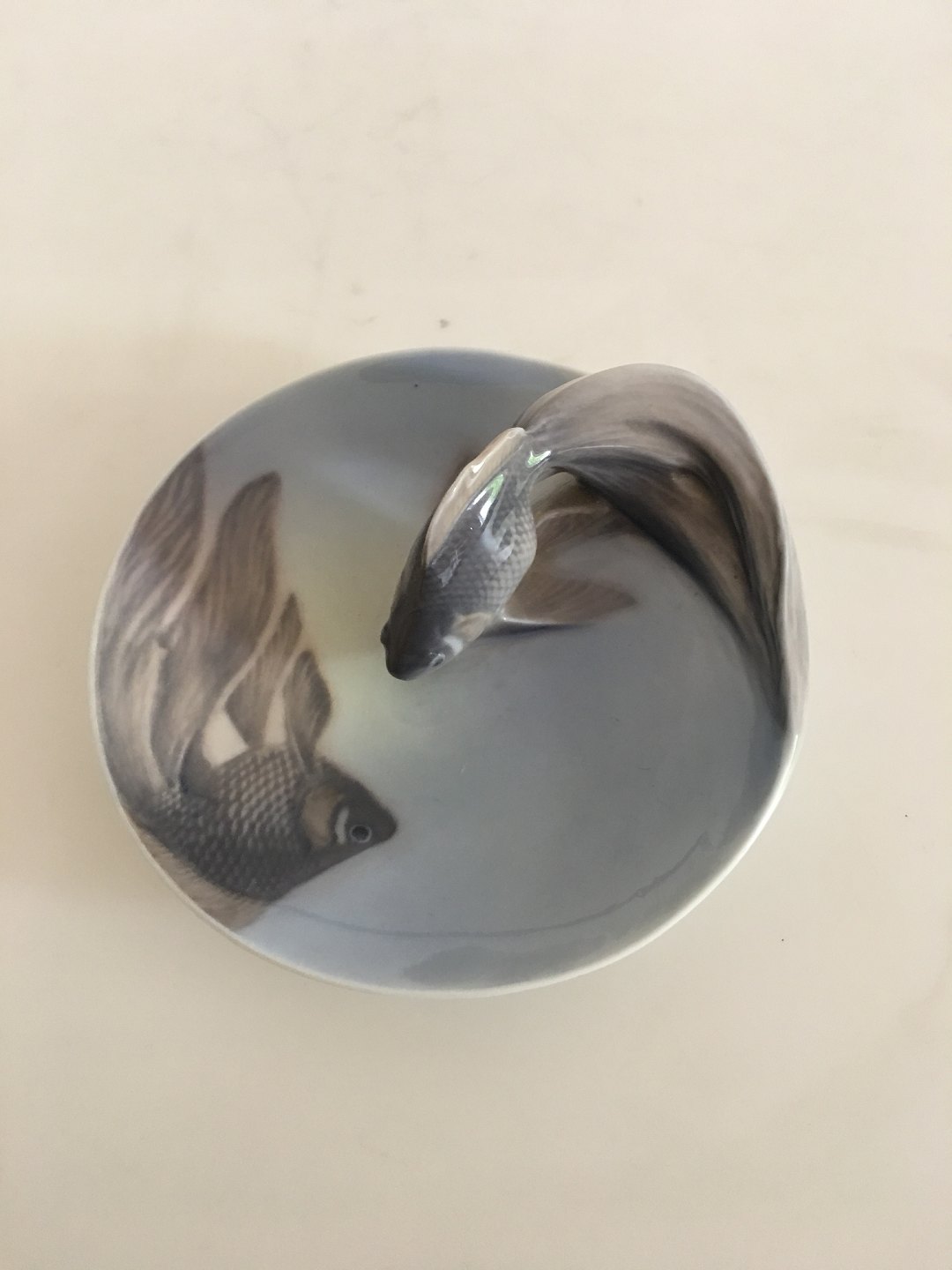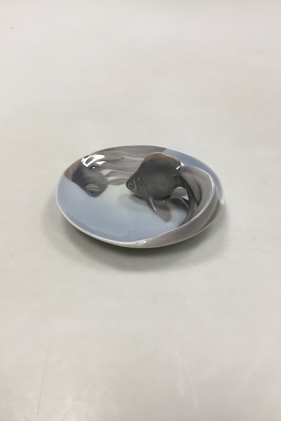 Royal Copenhagen Art Nouveau Skål med Fisk No 931. Måler 11.5 cm (4 17/32 in). 1. Sortering med glasurfejl.