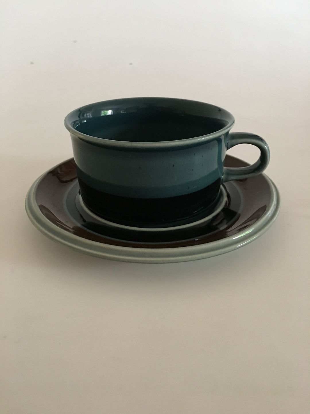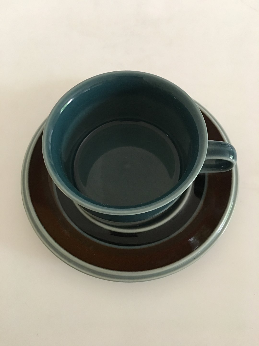 Arabia Finland "Meri Blå" Tekop med Underkop. Tekop måler 5.5 cm H. 10 cm dia. I perfekt stand
