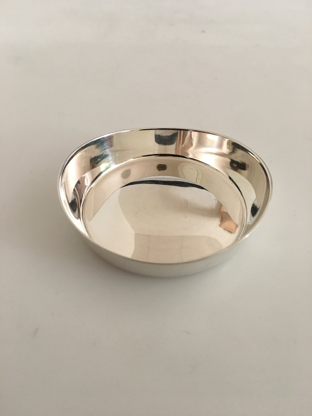 A small Georg Jensen bowl designed by Arno Malinowski. The bowl has a nice curved design. With a diameter of 5.6 cm and a height of 1.5 cm it is ideal as a salt dish. The bowl is made after 1945 and weighs 32 grams or 1.15 oz.